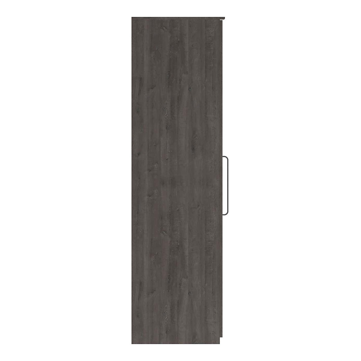 I’m a fan of this grey mirrored wardrobe because its clean lines and dark ash-effect finish slot straight into contemporary, scandi or industrial schemes, while the full-length mirrors help bounce light around smaller bedrooms. It’s practical too: soft-close hinges keep noise down, and the four doors open to generous hanging space and shelves, so you can add storage boxes or fabric drawers for organising. To style it, pair with pale linen bedding or a cosy wool rug to soften the overall look, and top it with decorative baskets or greenery to break up the straight edges. Position it against a light-coloured wall to make the dark finish really pop.