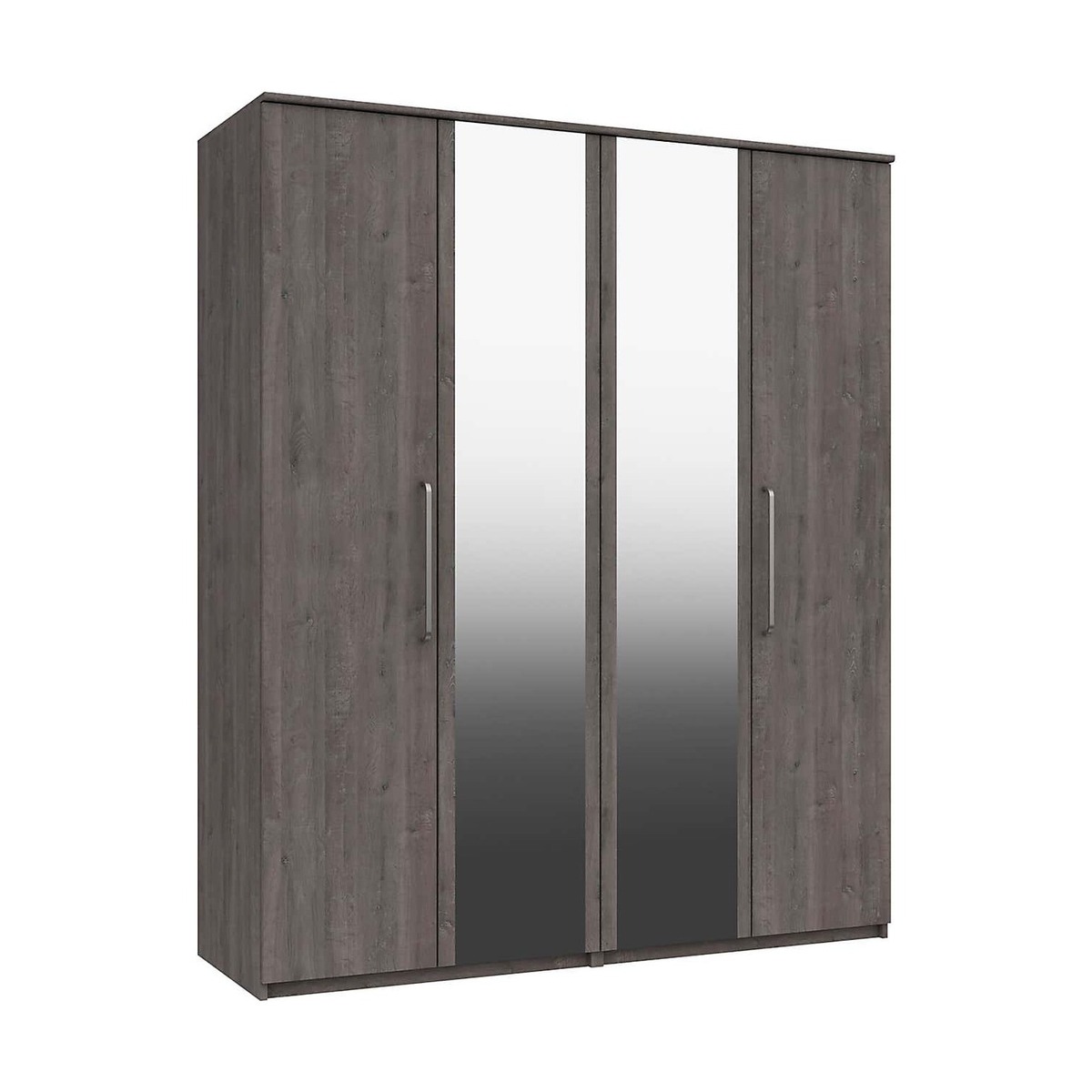 Parker Grey 4 Door Mirrored Wardrobe Dark Grey