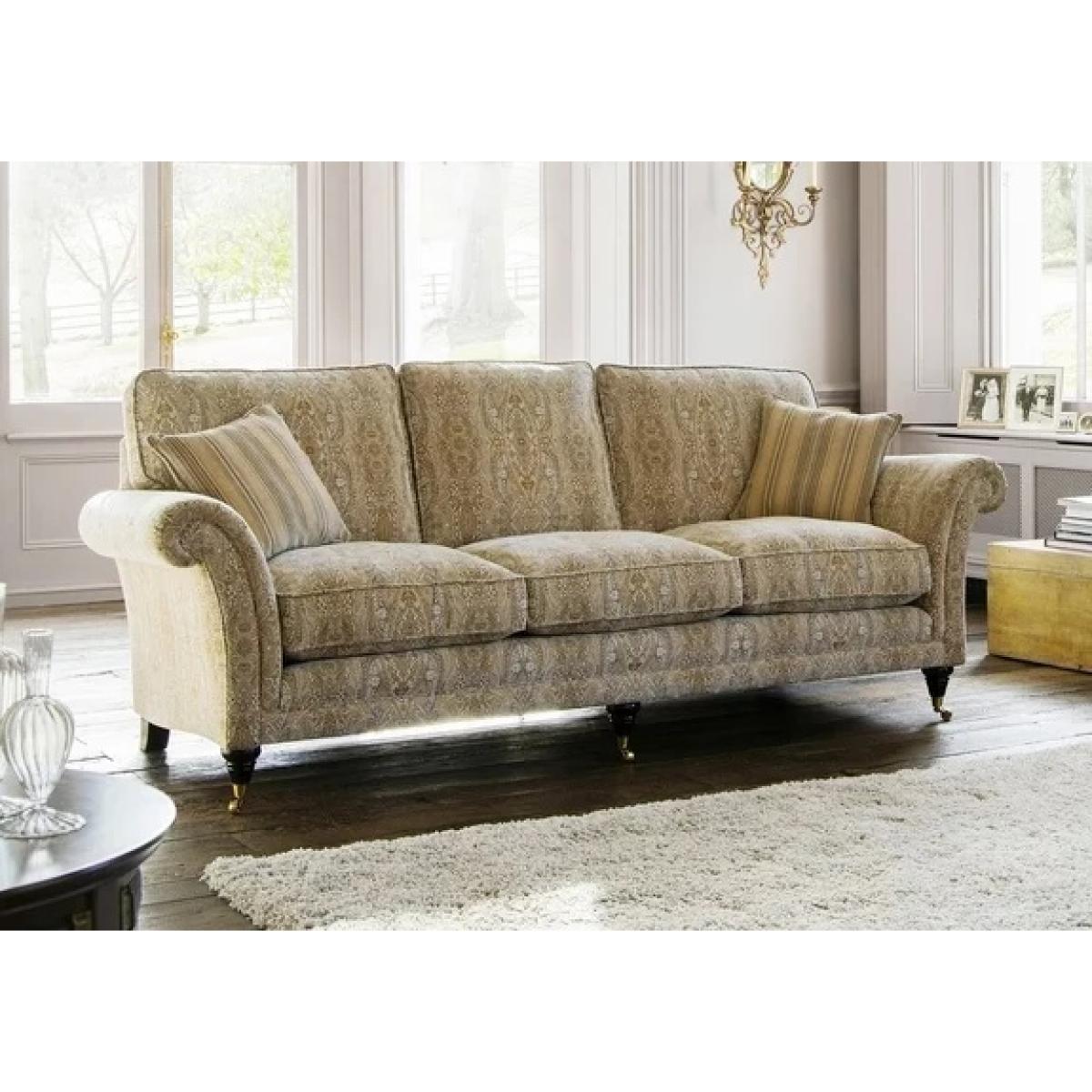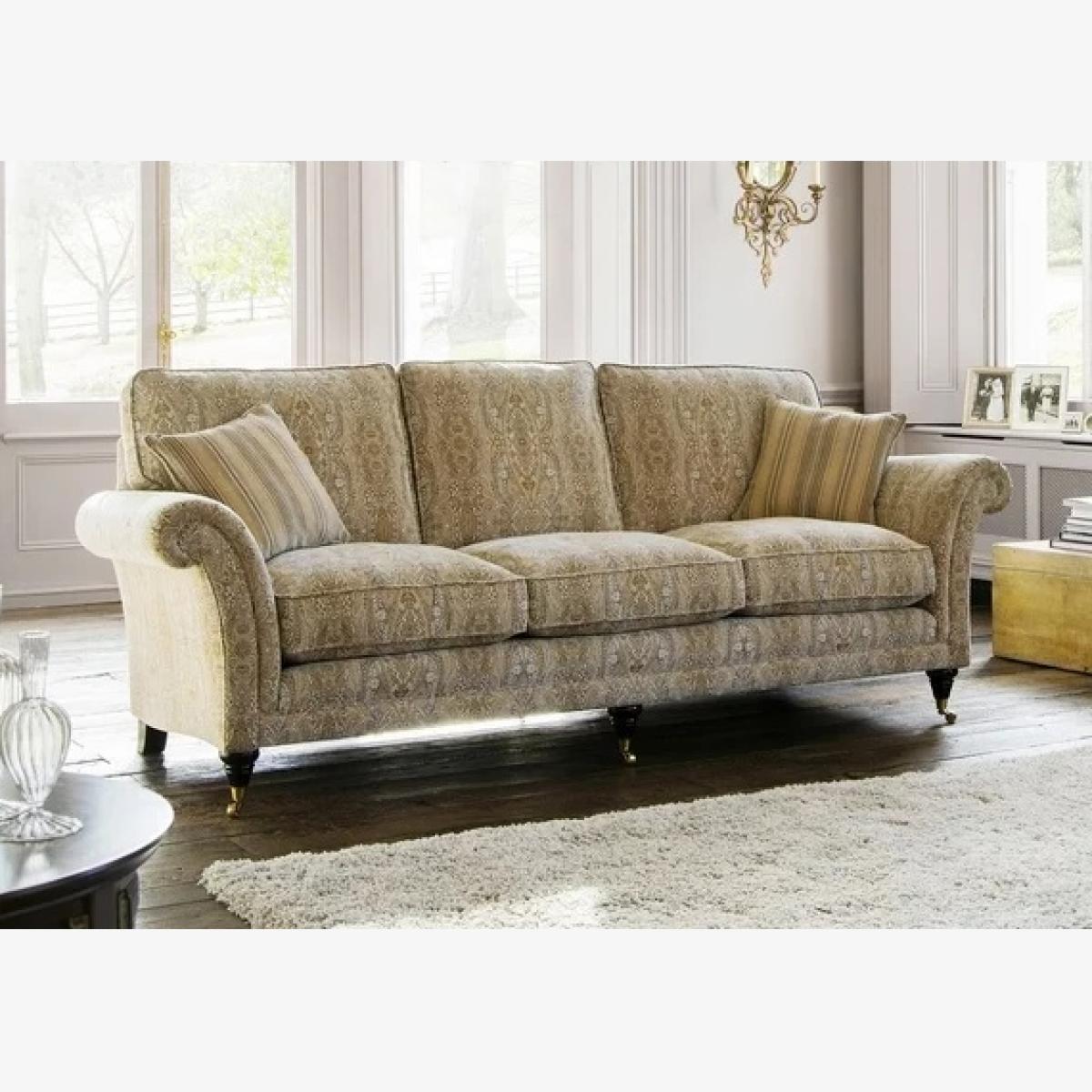 Part of the Parker Knoll Classic collection, the Burghley sofa offers your living space a traditional styled piece. The Burghley has beautiful scroll arms, a formal back for support and sits on elegant wooden feet. Manufactured in the UK by skilled master craftsmen, using time-honoured traditional methods. Exclusively developed technology now allows you to visualise your chosen material on your parker knoll chair from the comfort of your own home, making it easier than ever before to decide on your sofa of choice. Design your own Parker Knoll sofa by clicking here. The Burghley is available with a choice of Encore Fibre or Premium Comfort Foam seat interiors. The Encore Fibre seating is soft and luxurious with the benefit of not needed to plump your seat cushions as often, the seat has been constructed of a foam core for support with a pocket duvet wrapped around it for that comfy sit. To keep your Encore set interior in the good condition flip and swap over your cushions twice a week. The Premium Comfort Foam offers top levels of comfort and support, that provides a firmer sit. The Easycare seating takes minimal effort to maintain simply flip and swap over your cushions twice a week, to keep the cushions at their best. Dimensions: Overall Dimensions Width 236cm Depth 98cm Height 97cm Seat Width 180cm Seat Depth 59cm Seat Height 53cm Hardwood frame made using specially selected wood A choice of Encore Fibre or Premium Comfort Foam seat interior A choice of feet - choose to have castors or no castor and select from the three wood colours 2 x Scatter cushions included - with a choice of fibre or feather fill 25 year frame guarantee for peace of mind Made in the UK Please bear in mind that all screens vary in colour reproduction and whilst every effort has been made to display the colour as accurately as possible it is for guidance only. Please also bear in mind that should you opt for a leather model, leather is a natural product. No two hides are exactly the same and there may be subtle shade variation between pieces which is perfectly normal.