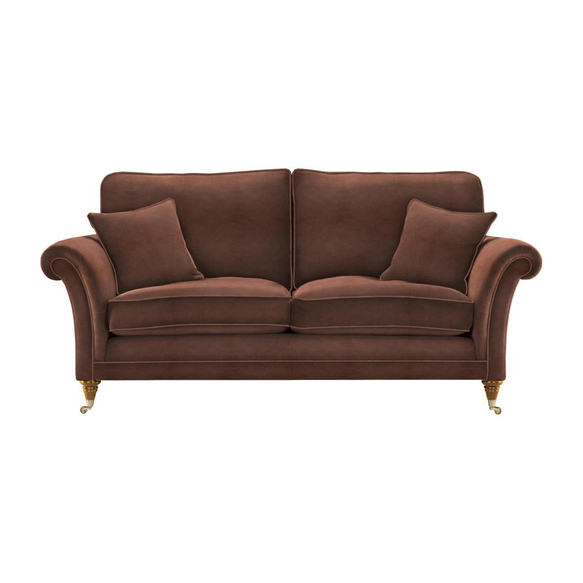 Experience the charm of authentic British style and craftsmanship with the Burghley large two- seater leather sofa. A classic design in 100% natural leather with irresistible sweeping scroll arms that feel just as good as they look. Why you'll love it Classic British two- seater leather sofa. Sweeping scroll arms in 100 % buttery- soft natural leather. Generously plumped high back for maximum comfort. In a choice of stylish colours. Turned wood feet in a choice of finishes with polished brass castors. Comes with two scatter cushions to complete the look. Also available in finely- tailored fabric. British style made in the UK. What you need to know This two- seater leather sofa has a medium comfort level. Removable and reversible seat cushions. Encore fibre seat cushions. Elasticated webbing. Zig- zag seating suspension. Please read our upholstery care guide for more advice. Part of the classic Burghley range of sofas and chairs in fabric and leather.