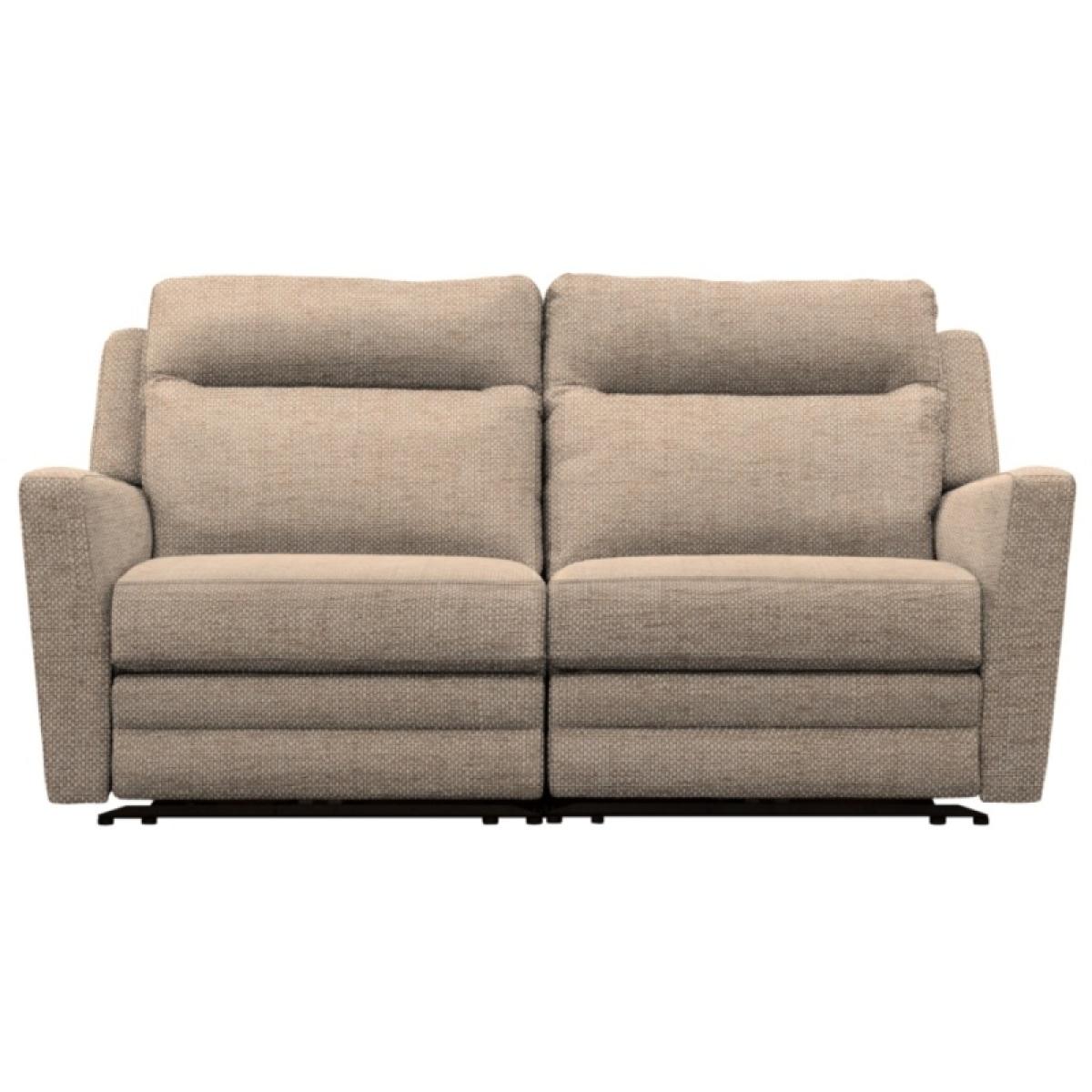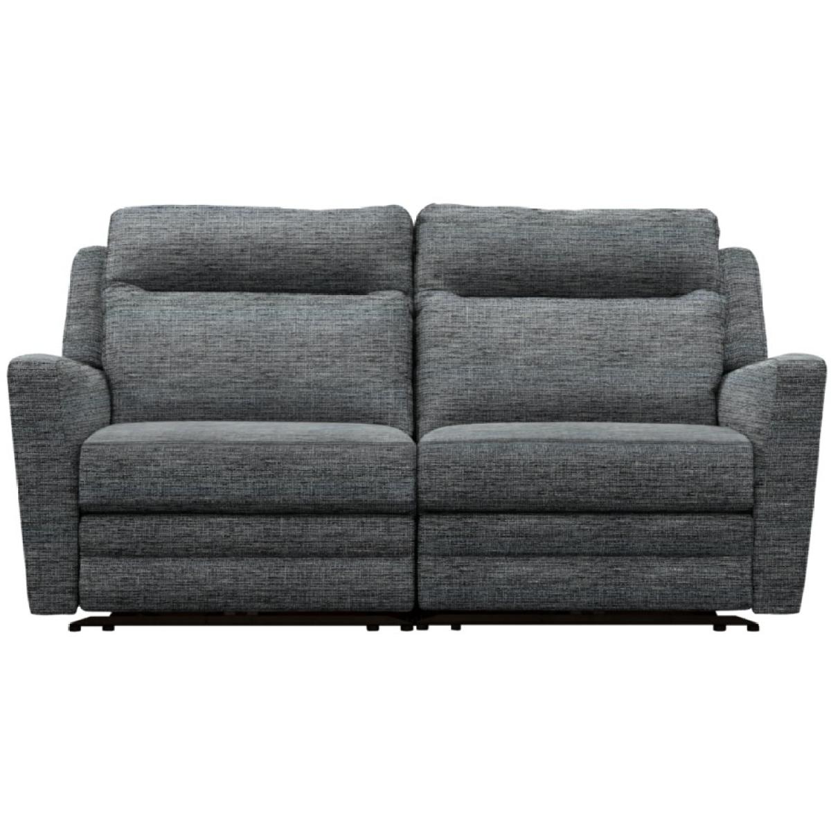 Due to its high back support and graceful sweeping lines, the Chicago large two seater reclining sofa is an understated staple for any contemporary space. Moreover, with the ability to upgrade to a rechargeable power pack (power plus), Chicago may offer a simple, clean aesthetic but it's not to be underestimated ergonomically. Available as a chair, 2-seater, or large 2-seater (power options available). Choose from a range of fabrics and leathers - only available on glides. Shown in Dobby Sand and Euphoria Charcoal fabric. Large Two Seater Dimensions: Height: 109cm Width: 194cm Depth: 97cm Depth Reclined: 165cm Seat Height: 51cm Seat Width: 160cm Seat Depth: 49cm Arm Height: 68cm All screens vary in colour reproduction and whilst every effort has been made to display the colour as accurately as possible it is for guidance only.