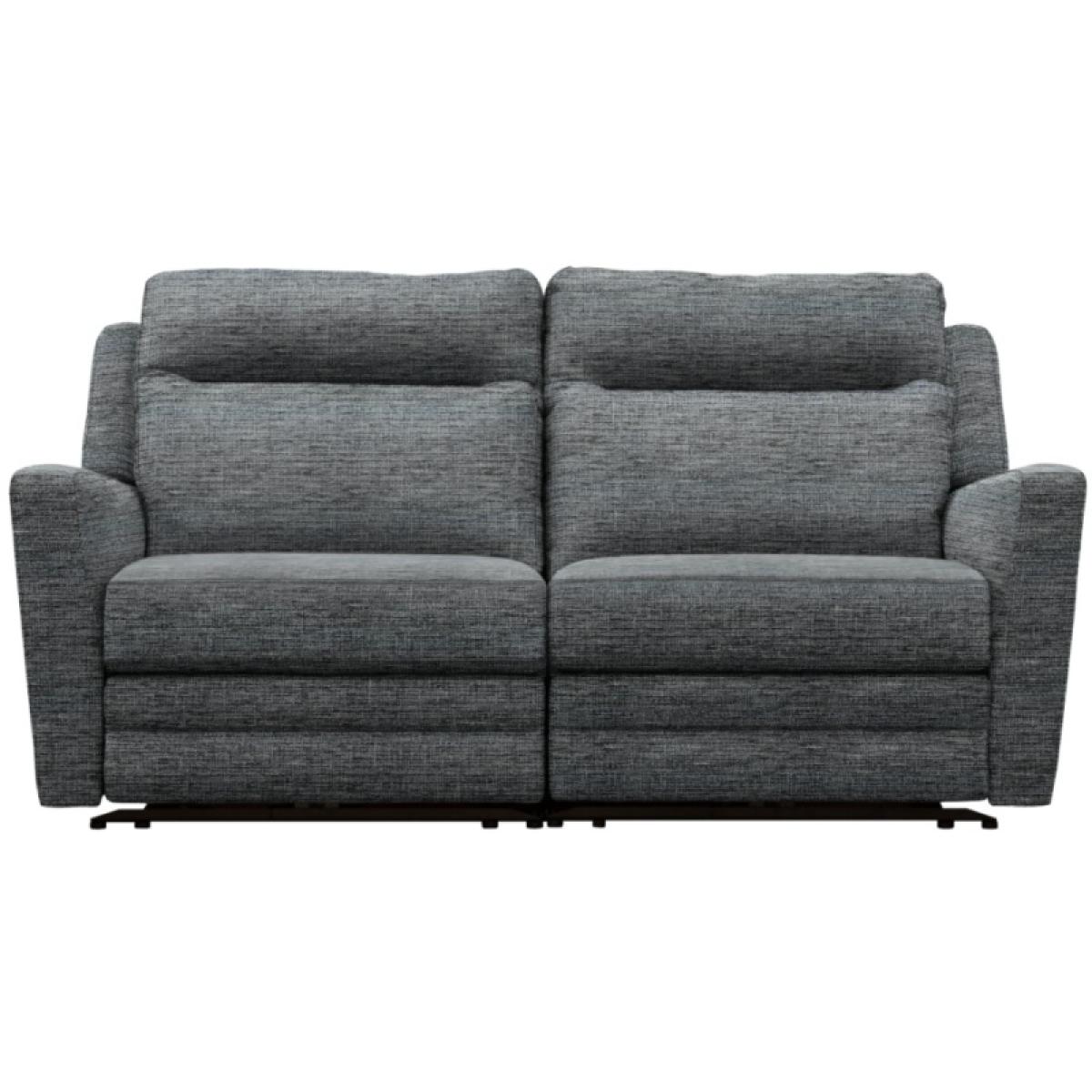 Due to its high back support and graceful sweeping lines, the Chicago large two seater reclining sofa is an understated staple for any contemporary space. Moreover, with the ability to upgrade to a rechargeable power pack (power plus), Chicago may offer a simple, clean aesthetic but it's not to be underestimated ergonomically.  Available as a chair, 2-seater, or large 2-seater (power options available). Choose from a range of fabrics and leathers - only available on glides. Shown in Dobby Sand and Euphoria Charcoal fabric. Large Two Seater Dimensions: Height: 109cm Width: 194cm Depth: 97cm Depth Reclined: 165cm Seat Height: 51cm Seat Width: 160cm Seat Depth: 49cm Arm Height: 68cm All screens vary in colour reproduction and whilst every effort has been made to display the colour as accurately as possible it is for guidance only.
