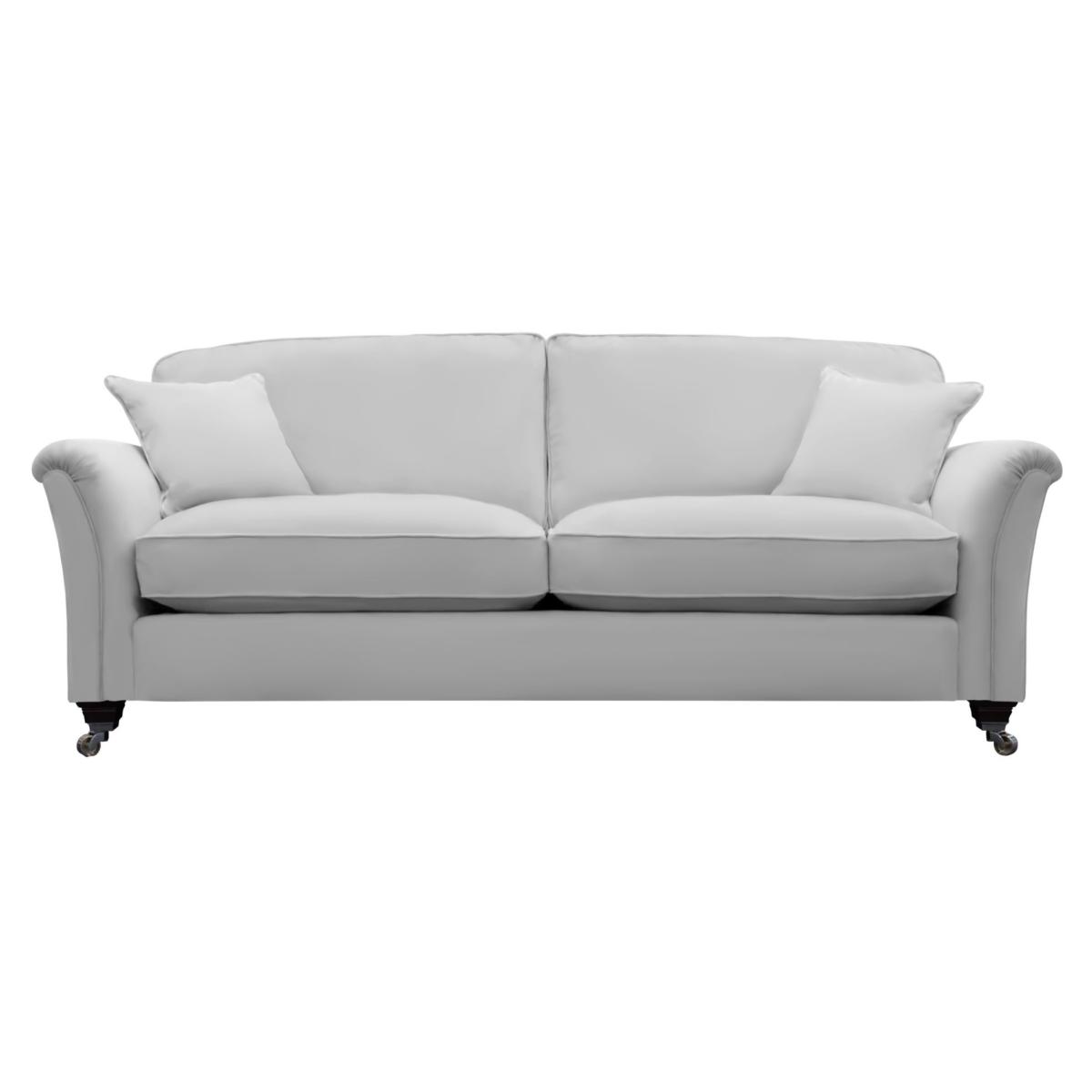 3 for 2! Get a 3 seater sofa or a large 2 seater sofa for the price of a standard 2 seater sofa. Or get a Grand sofa for the price of a large 2 seater sofa. Lovingly hand-crafted using the finest quality materials, Devonshire is a well proportioned classic design with fashionable, contemporary styling for a discerning taste. Upholstered in coordinating luxurious woven fabrics with precise piped detailing with complimentary feather-filled scatters to enhance the look and comfort the Devonshire upholstery collection from Parker Knoll. Available with a choice of 2 seat fillings...Simply make your choice when ordering: Encore Fibre has a fibre wrap on the outside for a softer, more sink in sit. Premium Comfort Foam requires less plumping and gives a firmer sit. Features: Robust serpentine fully sprung seat platform with fishmouth sprung edge, for supreme comfort and longevity Durable hardwood frame (25 year guarantee), harvested from sustainable sources Detachable, wooden legs with sophisticated polished metal castors in either brass or chrome. You can also opt for plain wooden turned legs. Simply make your choice when ordering Feet supplied as standard in Mahogany colour. Cherry & Teak are available on request and the price is the same, however please advise us if you want cherry or teak as soon as possible after ordering. Grand Sofa Dimensions: Width - 221cm Depth - 97cm Height - 95cm Seat Height: 54cm All screens vary in colour reproduction and whilst every effort has been made to display the colour as accurately as possible it is for guidance only.