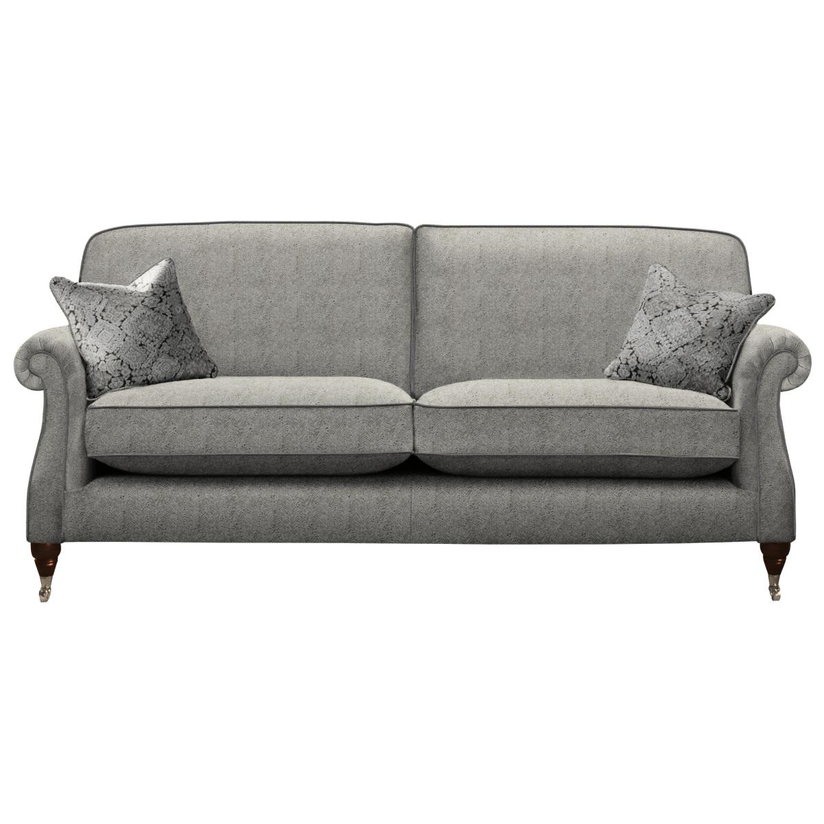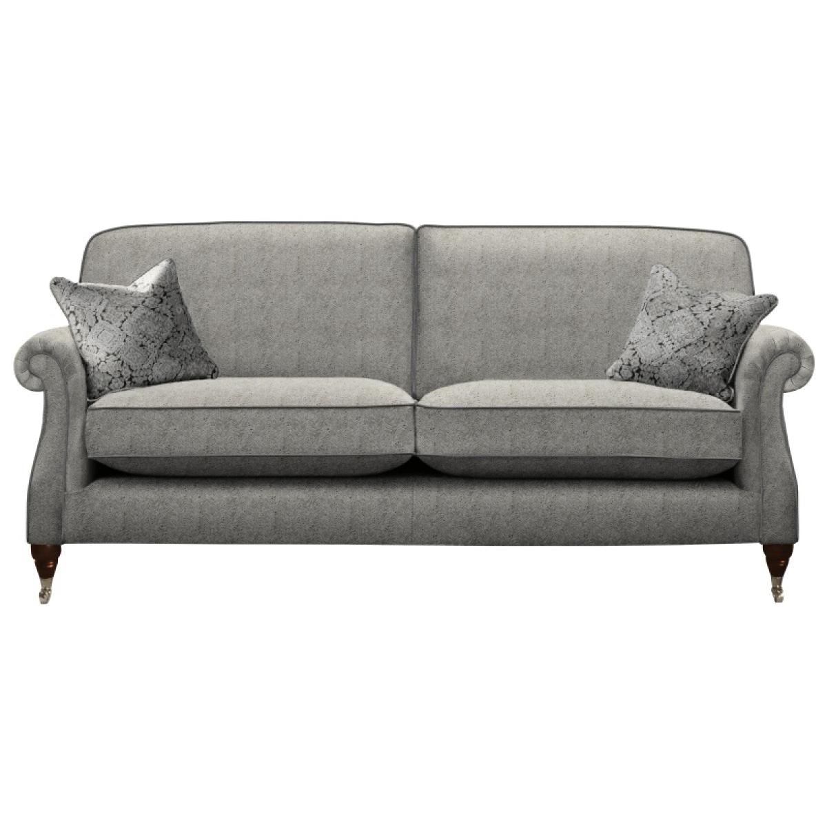 The Parker Knoll Eastbury Formal Back Grand Sofa in Fabric is a refined and comfortable seating option, ideal for both traditional and contemporary interiors. This sofa features a formal back design, providing structured support and a classic silhouette. Upholstered in high-quality fabric, it offers a soft and inviting texture, enhancing the overall comfort. The Parker Knoll Eastbury Collection is a refreshed version of the Parker Knoll Westbury but with even more options to pick from! There are size options to suit all, and a choice of pillow or standard back sofa. A wide range of fabrics or leathers are available and new for Parker Knoll, selected pieces are available in a leather/fabric mix. KEY FEATURES: Pieces are delivered seperately to be clipped together at home Foam seat cushions are standard, and the back cushions are a feather/fibre mix for that extra comfortable feeling. Seat and back cushions are loose and reversible Beech feet are available in a choice of mahogany, cherry or teak a choice of either chrome or brass castors. Available in fabric, leather or as a fabric/leather mix Feather filled scatter cushions included DIMENSIONS: Height: 100cm Width: 224cm Depth: 95cm Seat Height: 53cm Seat Width: 180cm Seat Depth: 58cm Arm Height: 72cm All screens vary in colour reproduction and whilst every effort has been made to display the colour as accurately as possible it is for guidance only. This image is only an indication of what the cover would look like and is not a true representation. You should always request a swatch sample.