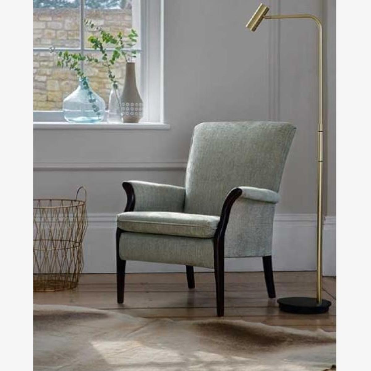 I’m a fan of the Froxfield armchair for its neat profile and soft, muted fabric - it slots easily into both contemporary and traditional schemes. The subtle green-grey upholstery teams well with timber floors or neutral walls, making it a versatile choice for living rooms, studies or snug corners. For styling, pair it with a slender floor lamp and a simple side table to create a dedicated reading spot. A textured cushion in natural linen will introduce depth, while brass accessories or a woven rug will pick up the dark wood of the arms. Its compact size also means it works well as extra seating in a bedroom or hall.