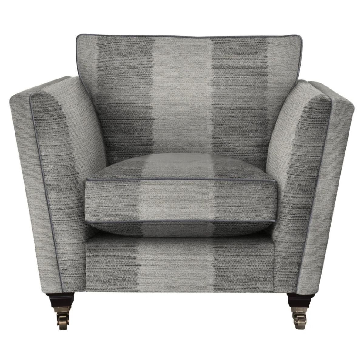 The Parker Knoll Harlow Fabric Armchair brings together classic sophistication and superior comfort, making it a standout piece in any home. Upholstered in premium-quality fabric, this beautifully tailored armchair features graceful curves, refined piping details, and deep, indulgent seat cushions for a truly luxurious seating experience. With its sumptuous comfort and exquisite craftsmanship, the Harlow Fabric Armchair is a timeless investment, perfect for those who appreciate classic design and luxurious materials. Whether as a standalone statement piece or paired with the Harlow collection, it offers unmatched style and comfort. KEY FEATURES: Premium Upholstery – Crafted from the finest materials for a rich, timeless look and long-lasting durability. Tailored Elegance – Crisp lines, subtle tufting, and piping details add a refined touch. Unrivalled Comfort – Deeply cushioned seat and supportive backrest provide all-day relaxation. Customisable Finish – Choose from a selection of castor leg options and wood finishes to complement your interior. Handcrafted to Perfection – Expertly made with a solid hardwood frame for superior stability and longevity. Foam seat cushions are standard, and the back cushions are fibre for that extra comfortable feeling. Beech feet are available in a choice of mahogany, cherry or teak with either chrome or brass castors. Seat and back cushions are loose and reversible. DIMENSIONS: Height: 92cm Width: 110cm Depth: 102cm Seat Height: 52cm Seat Width: 63cm Seat Depth: 58cm Arm Height: 74cm All screens vary in colour reproduction and whilst every effort has been made to display the colour as accurately as possible it is for guidance only. This image is only an indication of what the cover would look like and is not a true representation. You should always request a swatch sample.