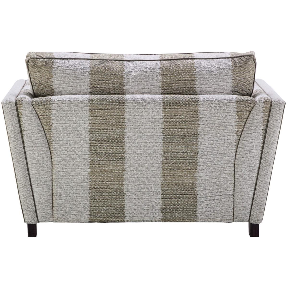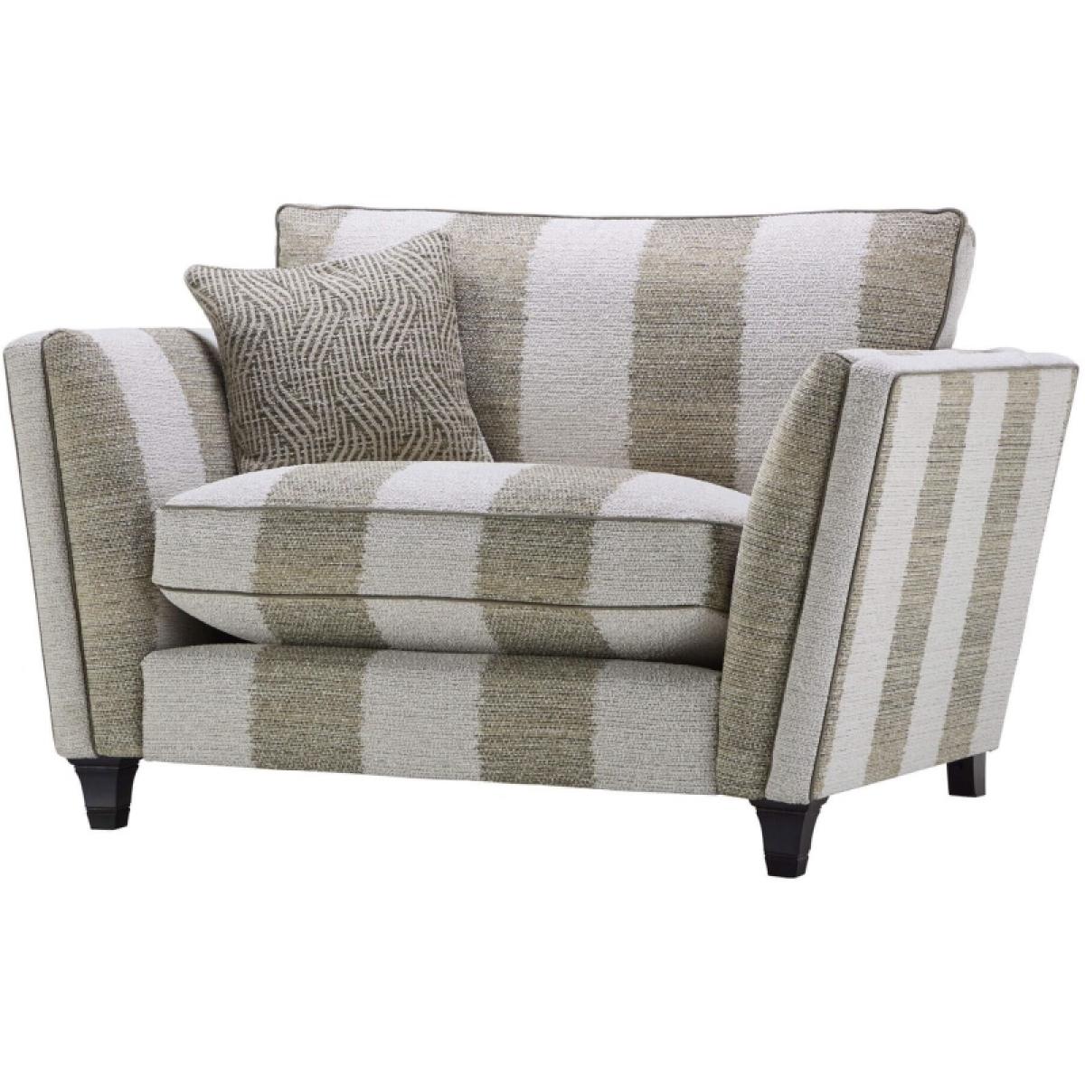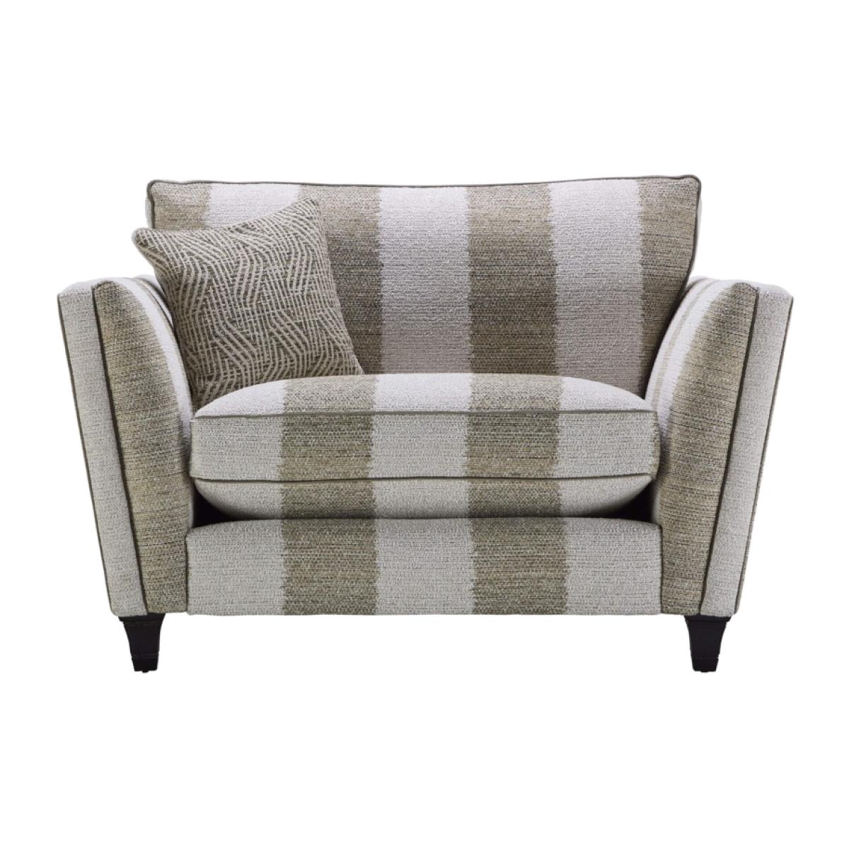 Please note, the Harlow is a brand new range for Parker Knoll and there limited images available of the range. This product is the Parker Knoll Harlow Leather Snuggler Chair but is pictured here in Fabric for illustration purposes only. The Parker Knoll Harlow Leather Snuggler Chair brings together classic sophistication and superior comfort, making it a standout piece in any home. Upholstered in premium-quality material, this beautifully tailored snuggler features graceful curves, refined piping details, and deep, indulgent seat cushions for a truly luxurious seating experience. With its sumptuous comfort and exquisite craftsmanship, the Harlow Leather Snuggler is a timeless investment, perfect for those who appreciate classic design and luxurious materials. Whether as a standalone statement piece or paired with the Harlow collection, it offers unmatched style and comfort. KEY FEATURES: Premium Upholstery – Crafted from the finest materials for a rich, timeless look and long-lasting durability. Tailored Elegance – Crisp lines, subtle tufting, and piping details add a refined touch. Unrivalled Comfort – Deeply cushioned seat and supportive backrest provide all-day relaxation. Customisable Finish – Choose from a selection of castor leg options and wood finishes to complement your interior. Handcrafted to Perfection – Expertly made with a solid hardwood frame for superior stability and longevity. Foam seat cushions are standard, and the back cushions are fibre for that extra comfortable feeling. Beech feet are available in a choice of mahogany, cherry or teak with either chrome or brass castors. Seat and back cushions are loose and reversible. DIMENSIONS: Height: 92cm Width: 141cm Depth: 102cm Seat Height: 52cm Seat Width: 93cm Seat Depth: 58cm Arm Height: 74cm All screens vary in colour reproduction and whilst every effort has been made to display the colour as accurately as possible it is for guidance only. This image is only an indication of what the cover would look like and is not a true representation. You should always request a swatch sample.