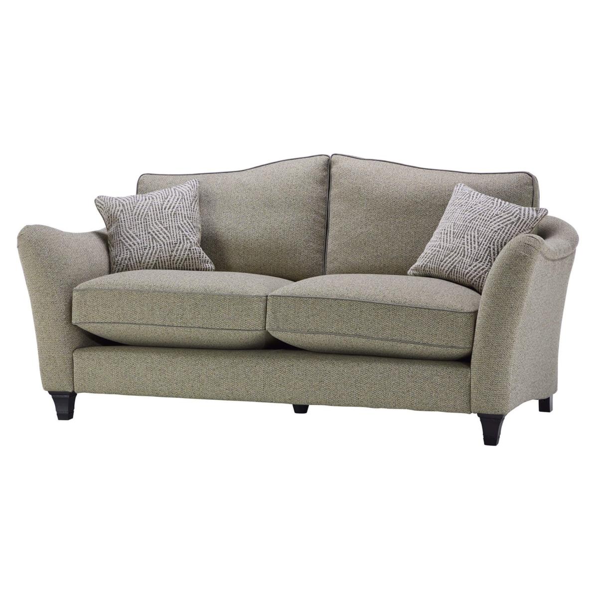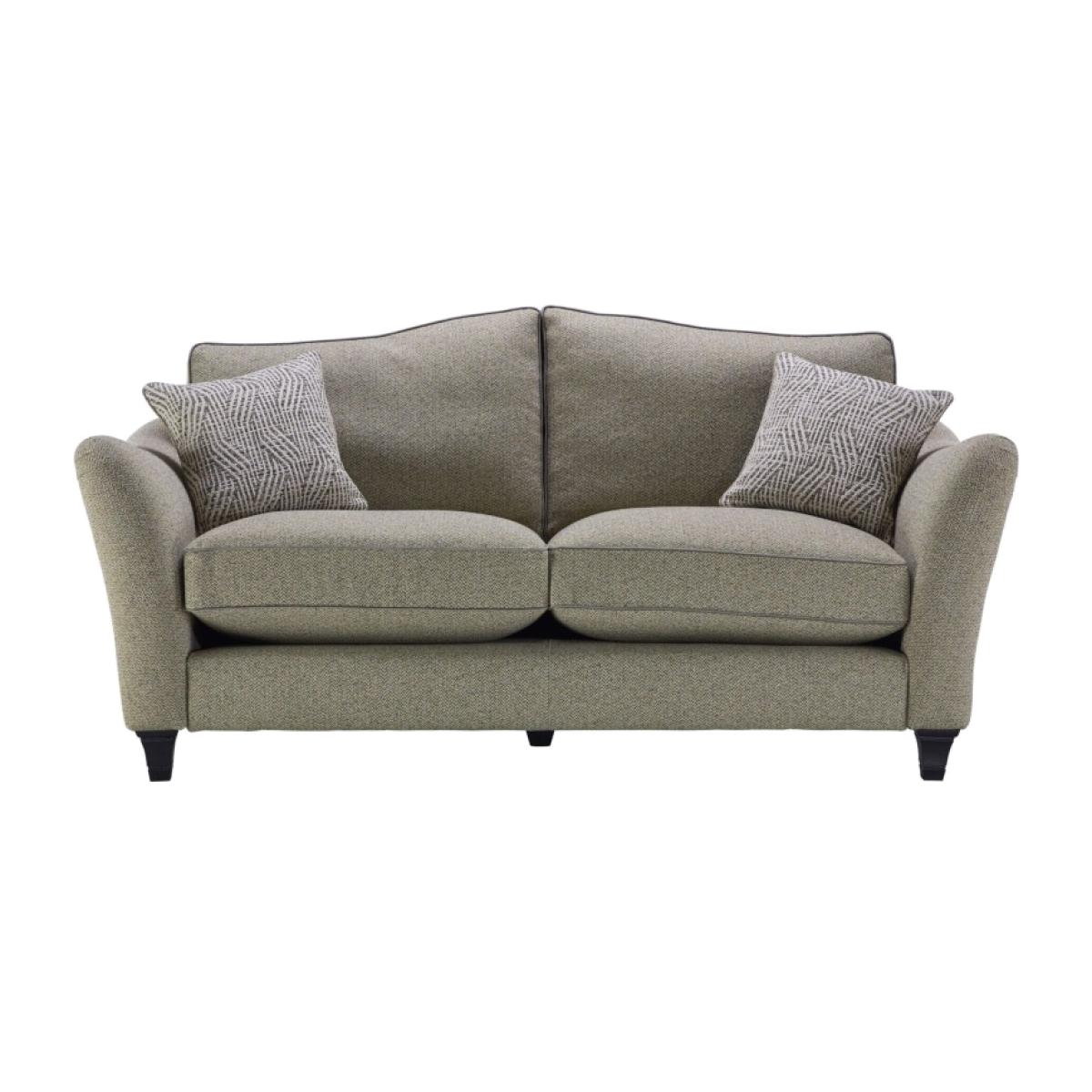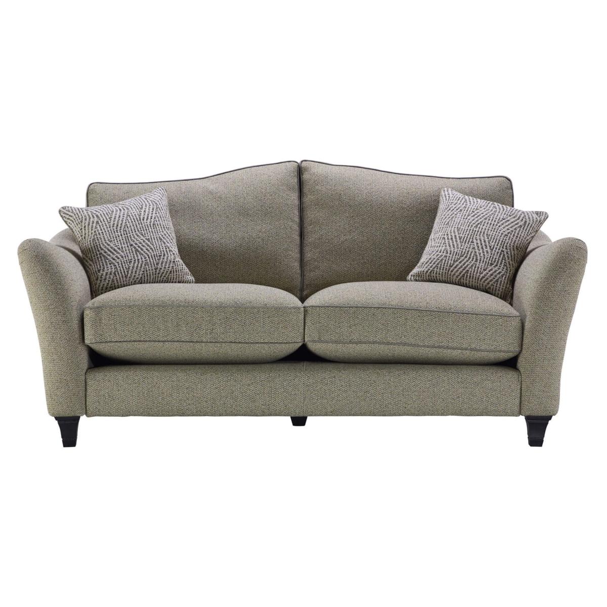 The Parker Knoll Harriet 2 Seater Formal Back Fabric Sofa is a refined and comfortable seating option, ideal for both traditional and contemporary interiors. This sofa features a formal back design, providing structured support and a classic silhouette. Upholstered in high-quality fabric, it offers a soft and inviting texture, enhancing the overall comfort. Harriet is rich with elegant details, such as a gentle flowing shape, pleated arms, and a curvaceous back with sweeping cushions to mirror its shape. Designed to suit a regal setting, this classically beautiful statement piece transforms and elevates as it stands proudly within any living space. There are size options to suit all, and there is a choice of pillow or standard back sofa. A wide range of fabrics or leathers are available and new for Parker Knoll, selected pieces are available in a leather/fabric mix. KEY FEATURES: Design - Elegant scroll arms and a curvaceous back with sweeping cushions contribute to its timeless style. Craftsmanship - Handmade in Britain by Parker Knoll's expert craftsmen, ensuring high-quality construction. Customization - Available in a wide range of fabrics, with options for beech leg finishes in mahogany, cherry, or teak with chrome or brass castors Foam seat cushions are standard, and the back cushions are fibre for that extra comfortable feeling. Seat and back cushions are loose and reversible. Scatters are feather filled and provided with each piece, excluding the chair. 25 year frame and frame assembly guarantee DIMENSIONS: Height: 95cm Width: 170cm Depth: 100cm Seat Height: 52cm Seat Width: 126cm Seat Depth: 58cm Arm Height: 73cm All screens vary in colour reproduction and whilst every effort has been made to display the colour as accurately as possible it is for guidance only. This image is only an indication of what the cover would look like and is not a true representation. You should always request a swatch sample.