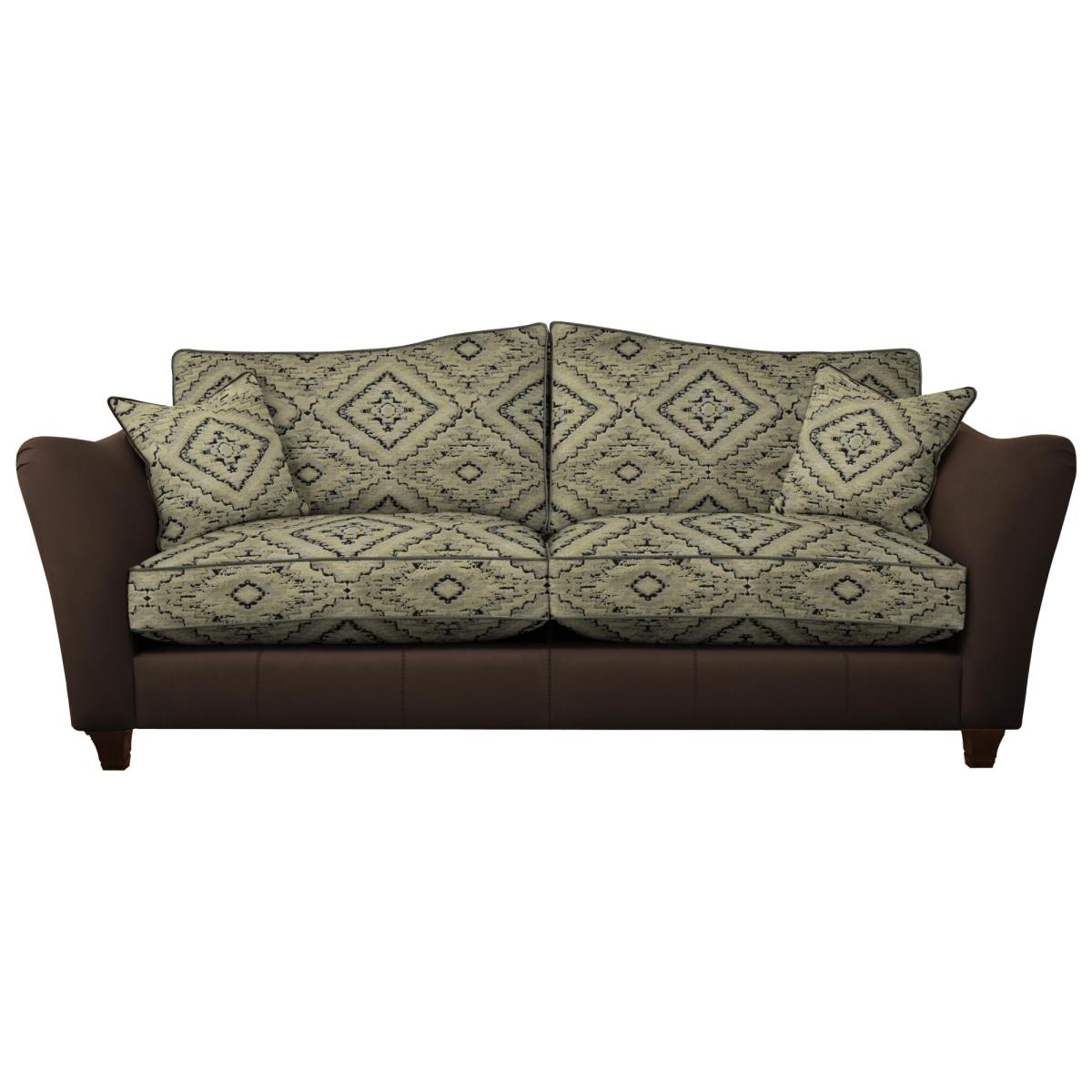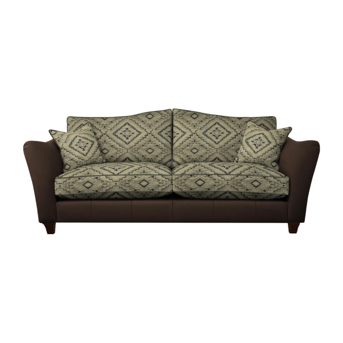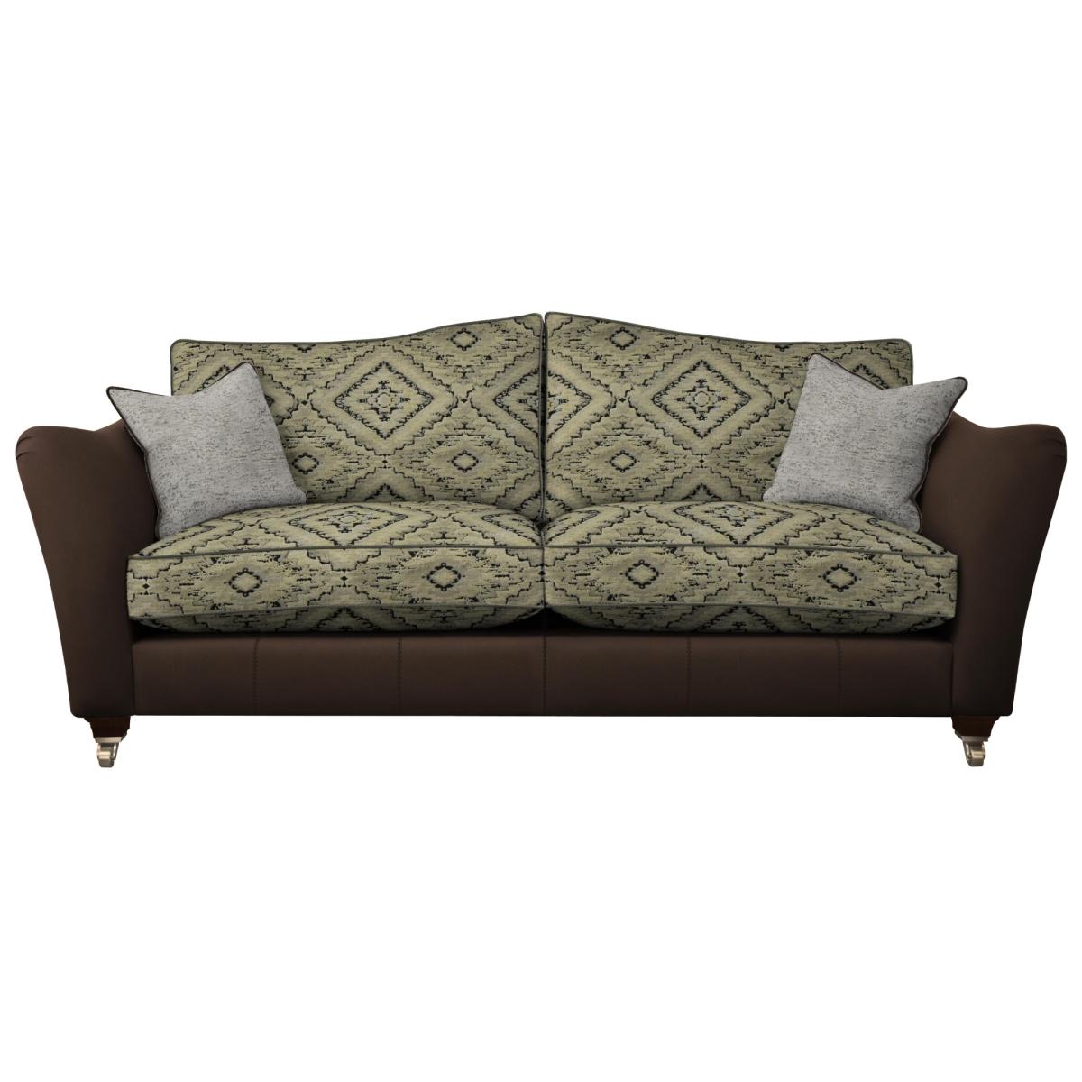 The Parker Knoll Harriet Grand Formal Back Fabric and Leather Sofa is a refined and comfortable seating option, ideal for both traditional and contemporary interiors. This sofa features a formal back design, providing structured support and a classic silhouette. Upholstered in high-quality materials, it offers a soft and inviting texture, enhancing the overall comfort. With this leather/fabric mix choice, the arms, back and front skirt are in leather, and the seat and back cushions are in fabric. You can pick from your favourite pairings to truly customise your new chair. Harriet is rich with elegant details, such as a gentle flowing shape, pleated arms, and a curvaceous back with sweeping cushions to mirror its shape. Designed to suit a regal setting, this classically beautiful statement piece transforms and elevates as it stands proudly within any living space. There are size options to suit all, and there is a choice of pillow or standard back sofa. A wide range of fabrics or leathers are available and new for Parker Knoll, selected pieces are available in a leather/fabric mix. KEY FEATURES: Design - Elegant scroll arms and a curvaceous back with sweeping cushions contribute to its timeless style. Craftsmanship - Handmade in Britain by Parker Knoll's expert craftsmen, ensuring high-quality construction. Customization - Available in a wide range of fabrics, with options for beech leg finishes in mahogany, cherry, or teak with chrome or brass castors Foam seat cushions are standard, and the back cushions are fibre for that extra comfortable feeling. Seat and back cushions are loose and reversible. Scatters are feather filled and provided with each piece, excluding the chair. 25 year frame and frame assembly guarantee DIMENSIONS: Height: 95cm Width: 227cm Depth: 100cm Seat Height: 52cm Seat Width: 183cm Seat Depth: 58cm Arm Height: 73cm All screens vary in colour reproduction and whilst every effort has been made to display the colour as accurately as possible it is for guidance only. This image is only an indication of what the cover would look like and is not a true representation. You should always request a swatch sample.