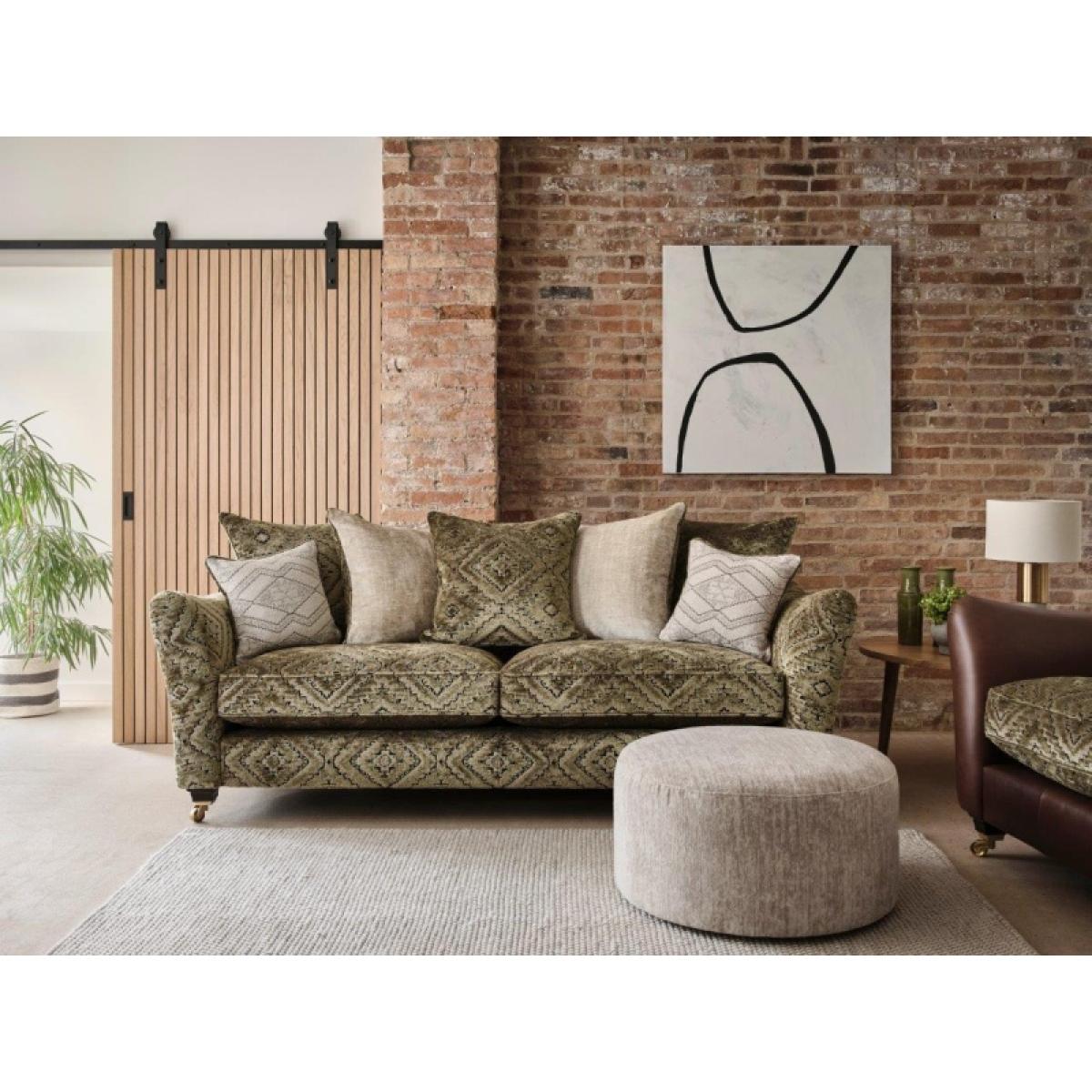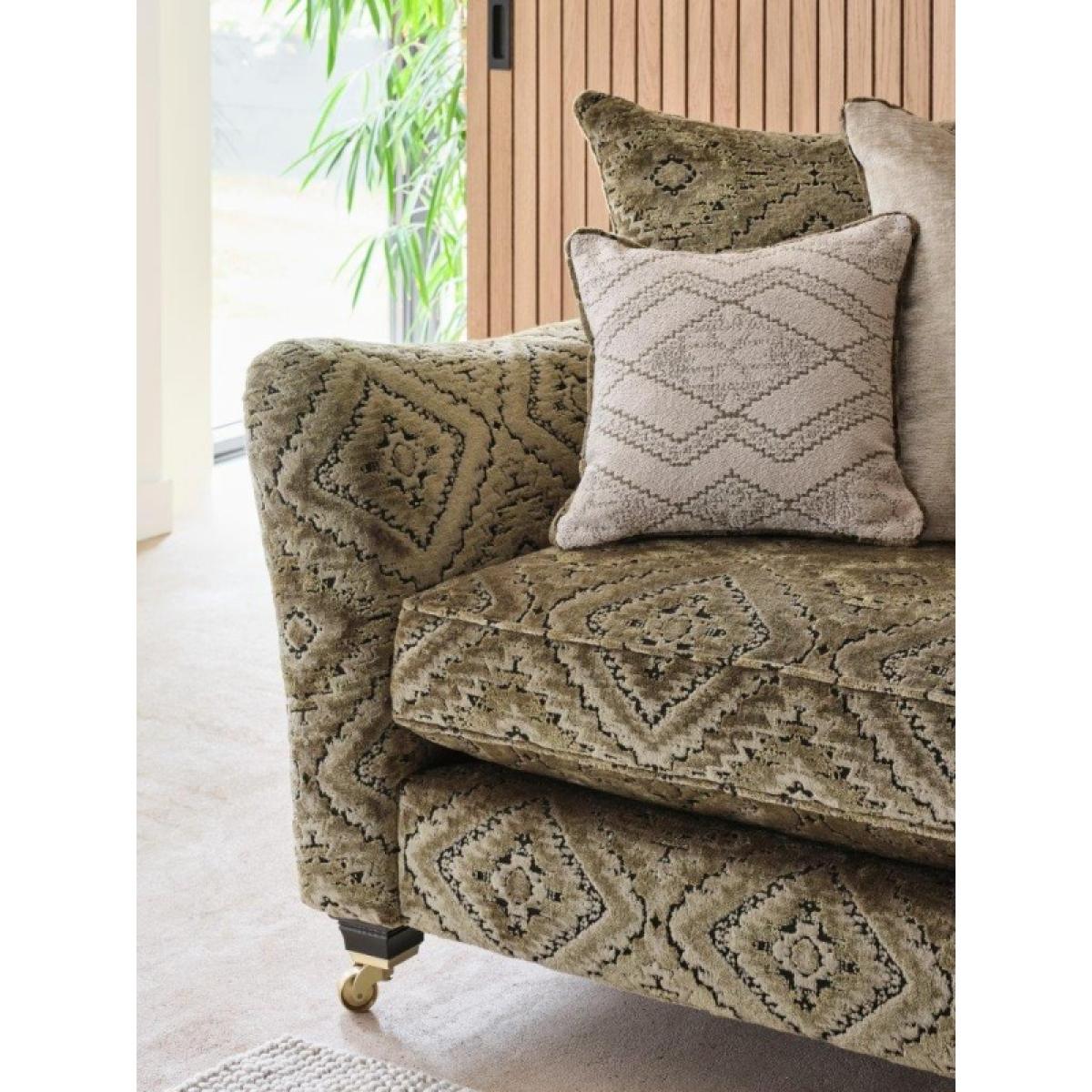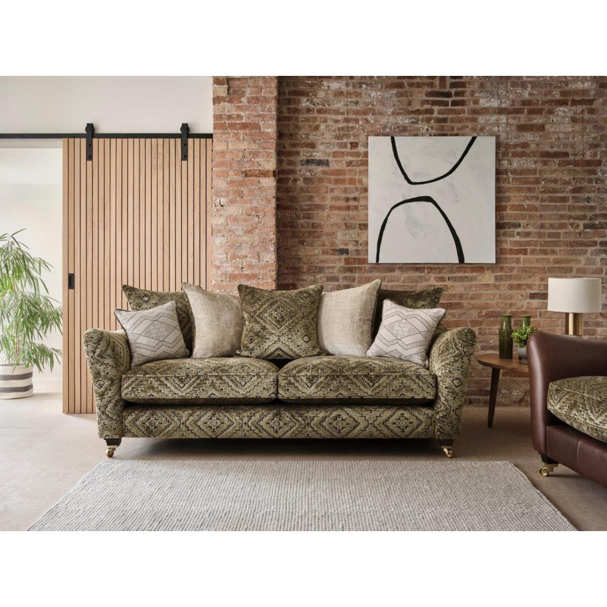 The Parker Knoll Harriet Large 2 Seater Pillow Back Fabric Sofa is a refined and comfortable seating option, ideal for both traditional and contemporary interiors. This sofa features a pillow back design, providing comfortable, classic support and a stylish silhouette. Upholstered in high-quality fabric, it offers a soft and inviting texture, enhancing the overall comfort. Harriet is rich with elegant details, such as a gentle flowing shape, pleated arms, and a curvaceous back with sweeping cushions to mirror its shape. Designed to suit a regal setting, this classically beautiful statement piece transforms and elevates as it stands proudly within any living space. There are size options to suit all, and there is a choice of pillow or standard back sofa. A wide range of fabrics or leathers are available and new for Parker Knoll, selected pieces are available in a leather/fabric mix. KEY FEATURES: Design - Elegant scroll arms and a curvaceous back with sweeping cushions contribute to its timeless style. Craftsmanship - Handmade in Britain by Parker Knoll's expert craftsmen, ensuring high-quality construction. Customization - Available in a wide range of fabrics, with options for beech leg finishes in mahogany, cherry, or teak with chrome or brass castors Foam seat cushions are standard, and the back cushions are fibre for that extra comfortable feeling. Seat and back cushions are loose and reversible. Scatters are feather filled and provided with each piece, excluding the chair. 25 year frame and frame assembly guarantee DIMENSIONS: Height: 95cm Width: 199cm Depth: 100cm Seat Height: 52cm Seat Width: 155cm Seat Depth: 58cm Arm Height: 73cm All screens vary in colour reproduction and whilst every effort has been made to display the colour as accurately as possible it is for guidance only. This image is only an indication of what the cover would look like and is not a true representation. You should always request a swatch sample.