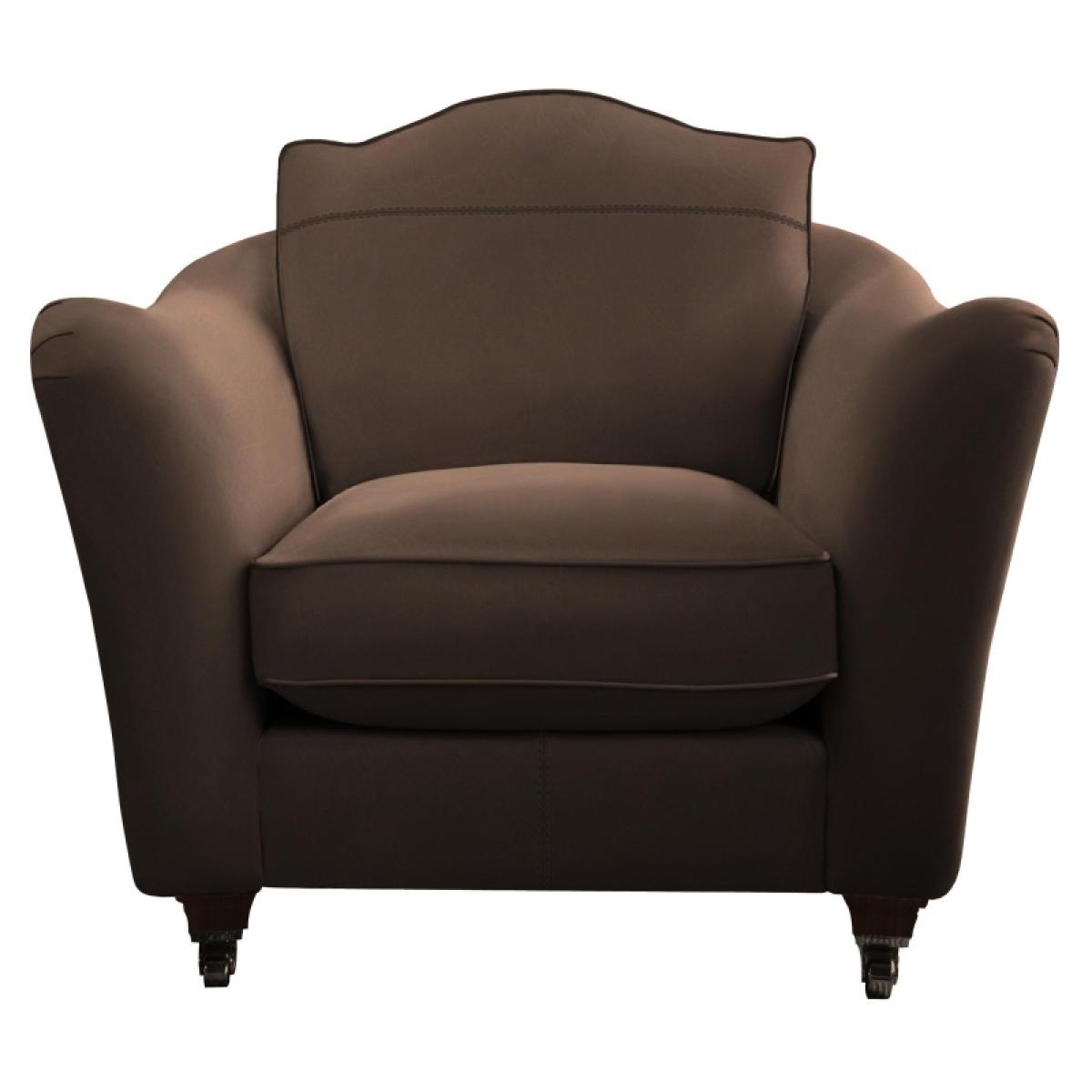 The Parker Knoll Harriet Leather Armchair is a refined and comfortable seating option, ideal for both traditional and contemporary interiors. This armchair features a formal back design, providing structured support and a classic silhouette. Upholstered in high-quality leather, it offers a soft and inviting texture, enhancing the overall comfort. Harriet is rich with elegant details, such as a gentle flowing shape, pleated arms, and a curvaceous back with sweeping cushions to mirror its shape. Designed to suit a regal setting, this classically beautiful statement piece transforms and elevates as it stands proudly within any living space. There are size options to suit all, and there is a choice of pillow or standard back for the sofas. A wide range of fabrics or leathers are available and new for Parker Knoll, selected pieces are available in a leather/fabric mix. KEY FEATURES: Design - Elegant scroll arms and a curvaceous back with sweeping cushions contribute to its timeless style. Craftsmanship - Handmade in Britain by Parker Knoll's expert craftsmen, ensuring high-quality construction. Customization - Available in a wide range of fabrics, with options for beech leg finishes in mahogany, cherry, or teak with chrome or brass castors Foam seat cushions are standard, and the back cushions are fibre for that extra comfortable feeling. Seat and back cushions are loose and reversible. 25 year frame and frame assembly guarantee DIMENSIONS: Height: 95cm Width: 107cm Depth: 100cm Seat Height: 52cm Seat Width: 63cm Seat Depth: 58cm Arm Height: 73cm All screens vary in colour reproduction and whilst every effort has been made to display the colour as accurately as possible it is for guidance only. This image is only an indication of what the cover would look like and is not a true representation. You should always request a swatch sample.