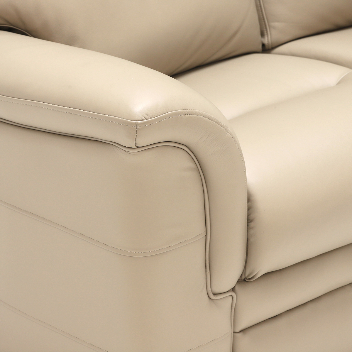 I love this two-seater because of its timeless leather finish, which adds a touch of sophistication to both modern and traditional interiors. Its neutral tone makes it quite versatile, blending effortlessly with colour schemes from soft neutrals to richer, more vibrant palettes. For styling tips, consider pairing it with textured cushions or throws to soften the look, or place it against a statement feature wall to draw focus. It works well in both formal lounge spaces and cosy, inviting settings, and its compact size makes it ideal for smaller rooms or as part of a larger seating arrangement. Practical and stylish, it’s a piece that combines comfort with classic appeal.