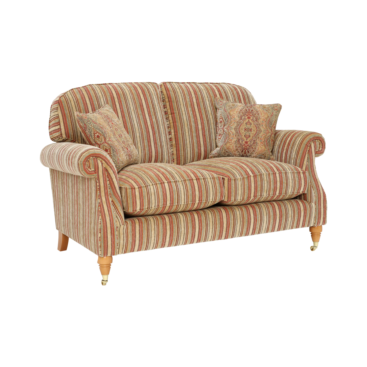 This sofa is a classic choice that adds a touch of timeless charm to any interior. I love how its striped pattern and traditional design lend themselves well to both period properties and eclectic contemporary schemes. It's versatile enough to sit comfortably in a cosy living room or a more formal sitting area, especially when paired with neutral or complementary patterned cushions. To style it effectively, I’d recommend mixing in some textured throws or modern accessories to prevent it from looking too traditional if that’s not the desired look. It works especially well with warm earthy tones or soft pastel accents, helping to create an inviting and balanced space.