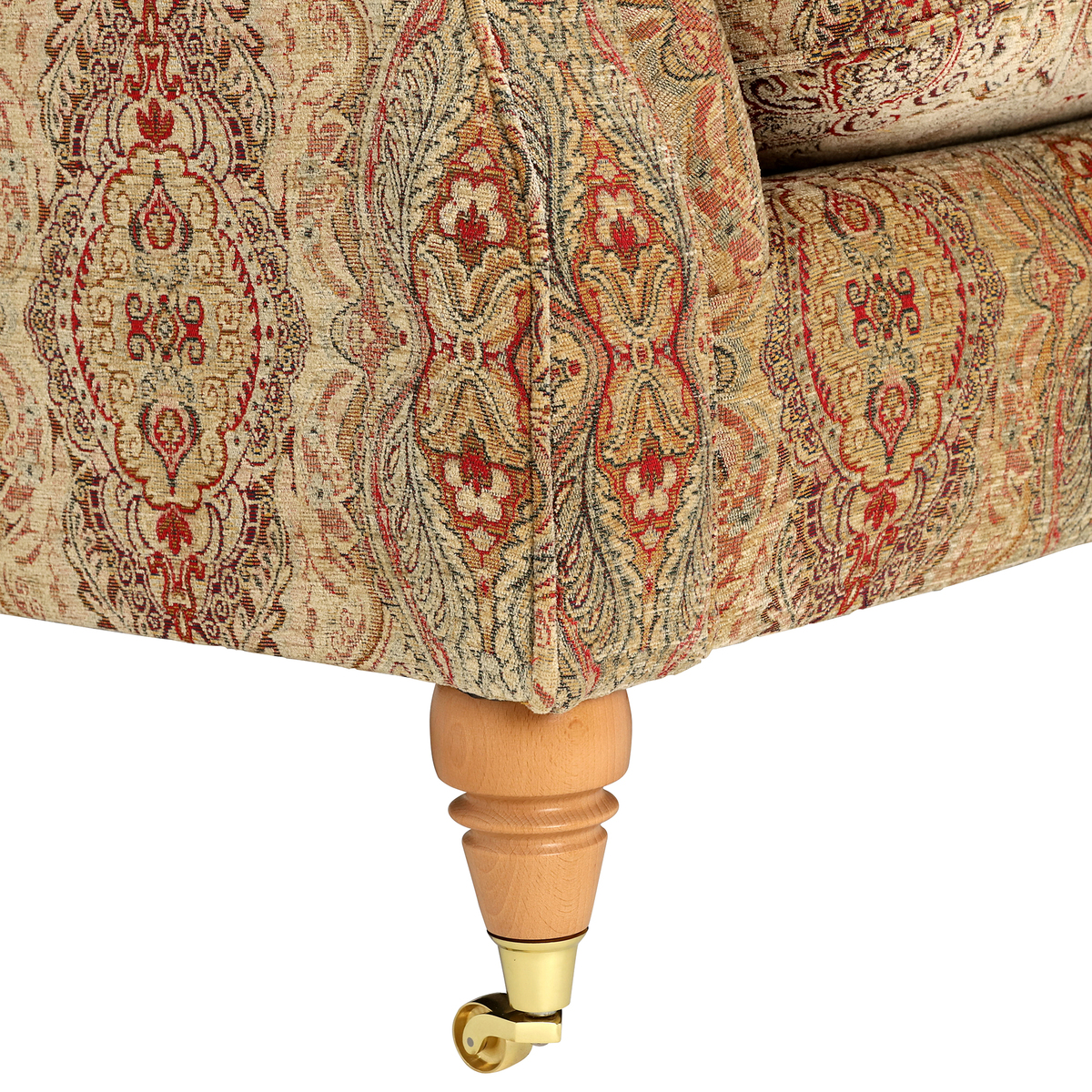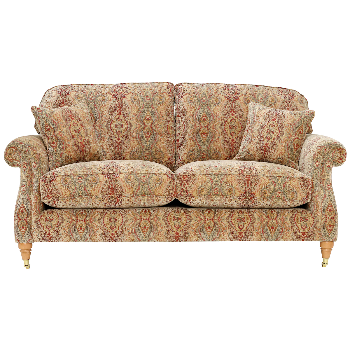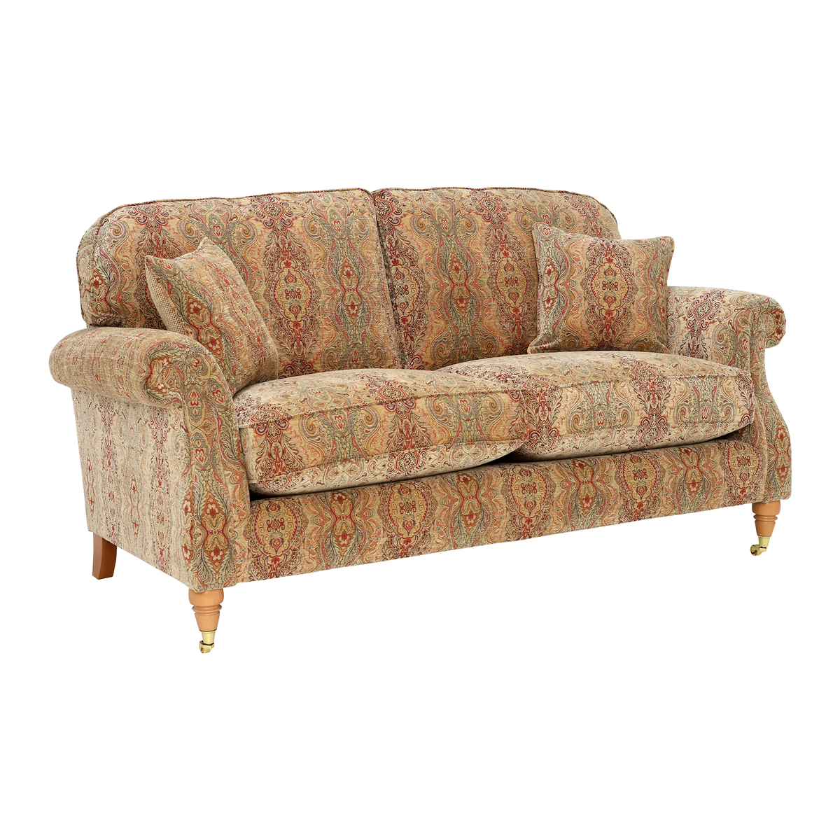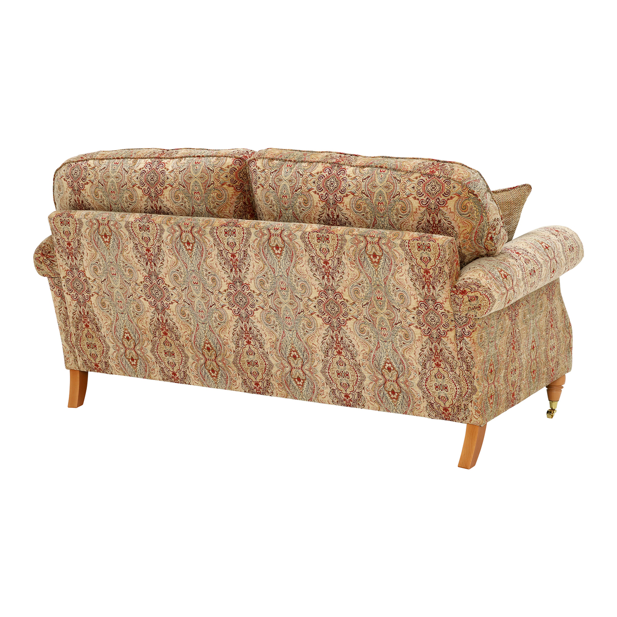 I love this sofa for its classic appeal and timeless design, making it a versatile choice for both traditional and eclectic interiors. Its generous size and supportive seat make it ideal for family living rooms or cosy sitting areas. The patterned fabric adds visual interest and can be paired with solid-coloured cushions and throws for a layered, inviting look. To style it well, consider placing it in a room with warm wood tones or neutral walls to let the fabric pattern be the star. Practical tips include using washable cushion covers and opting for protective throws to maintain its look over time, especially if you have pets or children. This piece anchors a space beautifully while offering both comfort and personality.