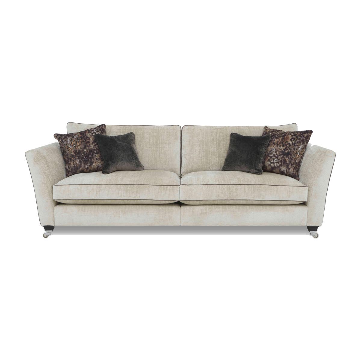 Enjoy traditional Parker Knoll quality with a contemporary twist in our Modern Classics collection. Upholstered in luxurious fabrics and offering super-soft and sumptuous comfort, this stunning collection is offered in three unique looks. The St James Park range brings statement style and a touch of the dramatic with beautiful scroll arms. Hyde Park has elegantly curved arms that invite you to linger. And sophisticated Victoria Park delivers clean lines and on-trend splayed arm style. Whatever look you choose you’ll enjoy sumptuous comfort, superb cushioning and exceptional craftsmanship. Handmade by Parker Knoll exclusively for Furniture Village. Our all-modern Victoria Park sofa channels traditional Parker Knoll craftsmanship and brings home clean, contemporary style with luxurious cushioning. Why you'll love it Classic Parker Knoll quality, sumptuous modern luxury. Our Victoria Park sofa has clean lines and a sophisticated splayed arm. Deep and luxurious seat cushions. All cushions are reversible for longer sofa life. Feet are finished in mahogany. Optional chrome-effect castors. Upholstered in beautiful, deep-pile chenille in a choice of contemporary colours. Make yours bespoke with contrast-colour piping. Comes with 2 large and 2 small feather-filled scatter cushions with piped edges. Frame is split into two halves for easy access. Handmade in the UK exclusively for Furniture Village. This 4-seater split frame sofa is part of our Modern Classics Victoria Park range. What you need to know Soft comfort level. Seat suspension: serpentine springs. Seat cushioning: fibre. Foam with fibre wrap available. Back suspension: webbing. Back cushioning: fibre. Scatter cushions: feather. Fibre available. Feet and arms are removable. Some fabrics can show wear on areas of more use or in direct sunlight. Clean regularly using a soft brush or vacuum with the curtain attachment. Deal with any spills promptly. Professional cleaning advised for oil- and grease-based stains. Please read our upholstery care guide for more advice.