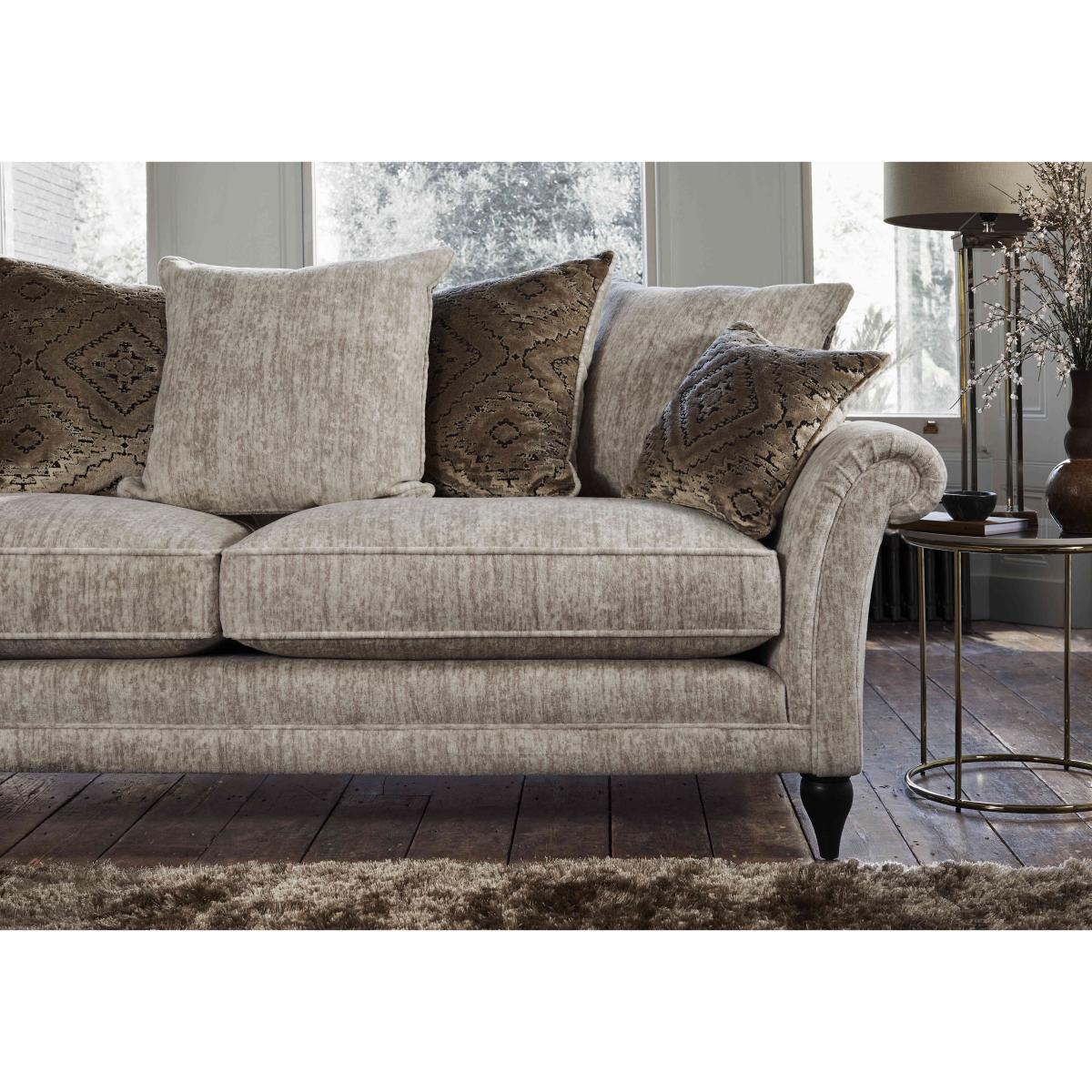 Offering classic elegance for on-trend homes, our exclusive Parker Knoll Plaza collection brings together the brand’s signature style, commitment to exceptional comfort and luxurious upholstery alongside a more contemporary aesthetic. The range includes both classic back and scatter back styles which allows you to choose between traditional and relaxed comfort, both of which coexist beautifully with those statement rolled arms and turned and polished wood legs. And as the range includes sofas, armchairs and footstools, you can create a living room that’s as family-friendly as it is stylish. The Parker Knoll Plaza range is handcrafted in the UK exclusively for Furniture Village. Complete relaxation is yours with this grand scatter back sofa from our exclusive Parker Knoll Plaza range. With sprung seats and feather scatters, you’ll enjoy superb comfort. Why you'll love it A Parker Knoll original made especially for Furniture Village. Traditional elegance reimagined for modern homes. With 5 large and 2 small feather-filled cushions forming the scatter back. Sweeping rolled arms and solid turned wood legs with a polished mahogany finish. Legs are available with optional brass or chrome castors. Sprung seat and back for even weight distribution and superb support wherever you sit. Reversible back and seat cushioning means your sofa lasts for longer. Sprung front edge for greater comfort. Upholstered in a wide choice of beautiful Parker Knoll fabrics. Wooden frame comes with a 25-year guarantee. Prefer a different look? Choose the Plaza grand classic back sofa. Skilfully handcrafted in the UK exclusively for Furniture Village. This grand scatter back sofa is part of the Parker Knoll Plaza range. What you need to know Medium comfort level. Seat suspension: serpentine springs. Seat cushioning: Encore foam. Fibre filling available at no additional cost. Cushioning is reversible. Back support: elasticated webbing. Scatter back cushions: feather. Fibre filling available at no additional cost. Rotate seat cushions for maximum wear. To maintain cushion fullness, be sure to plump cushions daily. Some fabrics can show wear on areas of more use or in direct sunlight. Clean weekly using a soft brush or vacuum with the curtain attachment. Deal with any spills promptly. Professional cleaning advised for oil- and grease-based stains. Please read our upholstery care guide for more advice. Item code: PLAZGRSBB--001