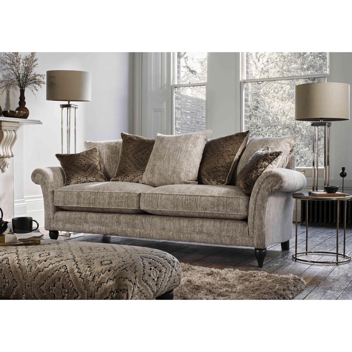 Offering classic elegance for on-trend homes, our exclusive Parker Knoll Plaza collection brings together the brand’s signature style, commitment to exceptional comfort and luxurious upholstery alongside a more contemporary aesthetic. The range includes both classic back and scatter back styles which allows you to choose between traditional and relaxed comfort, both of which coexist beautifully with those statement rolled arms and turned and polished wood legs. And as the range includes sofas, armchairs and footstools, you can create a living room that’s as family-friendly as it is stylish. The Parker Knoll Plaza range is handcrafted in the UK exclusively for Furniture Village. Complete relaxation is yours with this grand scatter back sofa from our exclusive Parker Knoll Plaza range. With sprung seats and feather scatters, you’ll enjoy superb comfort. Why you'll love it A Parker Knoll original made especially for Furniture Village. Traditional elegance reimagined for modern homes. With 5 large and 2 small feather-filled cushions forming the scatter back. Sweeping rolled arms and solid turned wood legs with a polished mahogany finish. Legs are available with optional brass or chrome castors. Sprung seat and back for even weight distribution and superb support wherever you sit. Reversible back and seat cushioning means your sofa lasts for longer. Sprung front edge for greater comfort. Upholstered in a wide choice of beautiful Parker Knoll fabrics. Wooden frame comes with a 25-year guarantee. Prefer a different look? Choose the Plaza grand classic back sofa. Skilfully handcrafted in the UK exclusively for Furniture Village. This grand scatter back sofa is part of the Parker Knoll Plaza range. What you need to know Medium comfort level. Seat suspension: serpentine springs. Seat cushioning: Encore foam. Fibre filling available at no additional cost. Cushioning is reversible. Back support: elasticated webbing. Scatter back cushions: feather. Fibre filling available at no additional cost. Rotate seat cushions for maximum wear. To maintain cushion fullness, be sure to plump cushions daily. Some fabrics can show wear on areas of more use or in direct sunlight. Clean weekly using a soft brush or vacuum with the curtain attachment. Deal with any spills promptly. Professional cleaning advised for oil- and grease-based stains. Please read our upholstery care guide for more advice. Item code: PLAZGRSBB--014