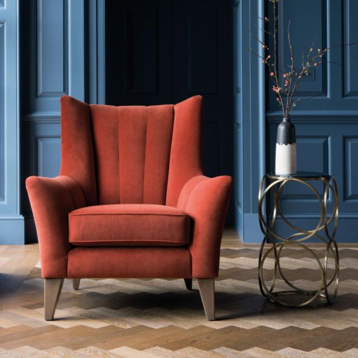 The beautiful. Parker Knoll Shoreditch armchair. Features opulent winged arms and back with fluted detailing. This Parker Knoll armchair was designed as part of the 150th anniversary collection with inspiration taken from lounge chairs found on board naval ships during the war. Position in entranceways for a practical decorative addition to your home.