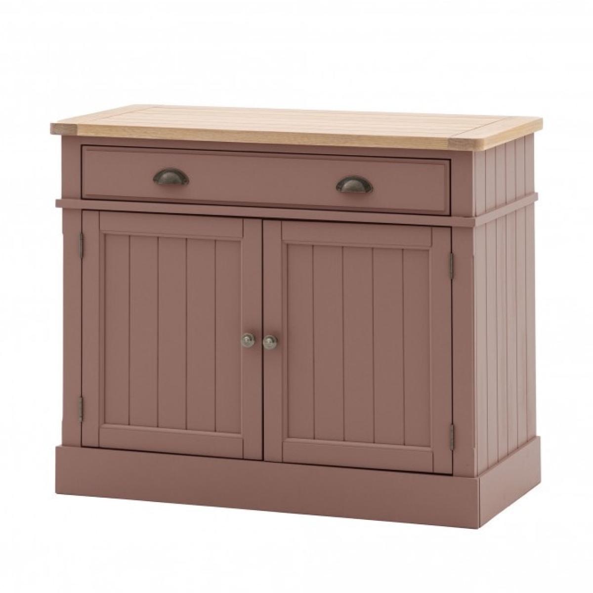 This sideboard combines traditional charm with contemporary style. Offering practical storage with a single large draw and 2 door cupboard with adjustable shelves, there’s plenty of storage space. The combination of the grooved & planked oak top with hand painted textured finish base, grooved doors and traditional style metal handles gives the sideboard a modern twist on a country classic style. Material:Oak / Pine / MDF. Colour/Finish: Clay.