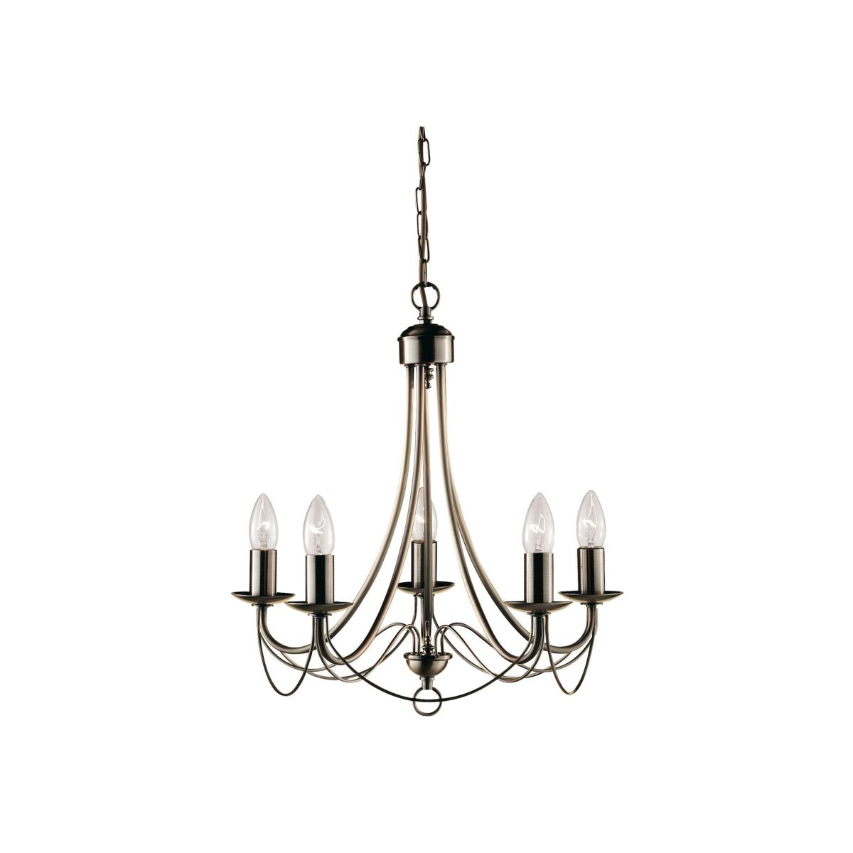 The elegantly crafted frame of the antique brass 5 light chandelier features lavish arms draping and swooping outwards for an opulent effect. The five lamp holders house exposed candle bulbs which are mounted on long curved arms suspended from an antique brass ceiling plate and the rich, layering effect creates a look that is both elegant and modern for any living room, bedroom, hallway or dining area.