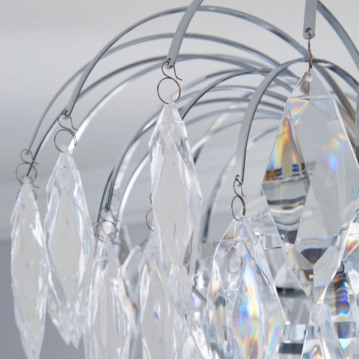 Bring a touch of sophistication to your home with the Parla Pendant Fitting, featuring a delicate cascading droplet shade made from clear acrylic. Complete with a stylish chrome frame, this glamorous, semi-flush light fitting would make a great addition to both modern and traditional decor styles. This piece is dimmable compatible, making it both an attractive and practical product.
