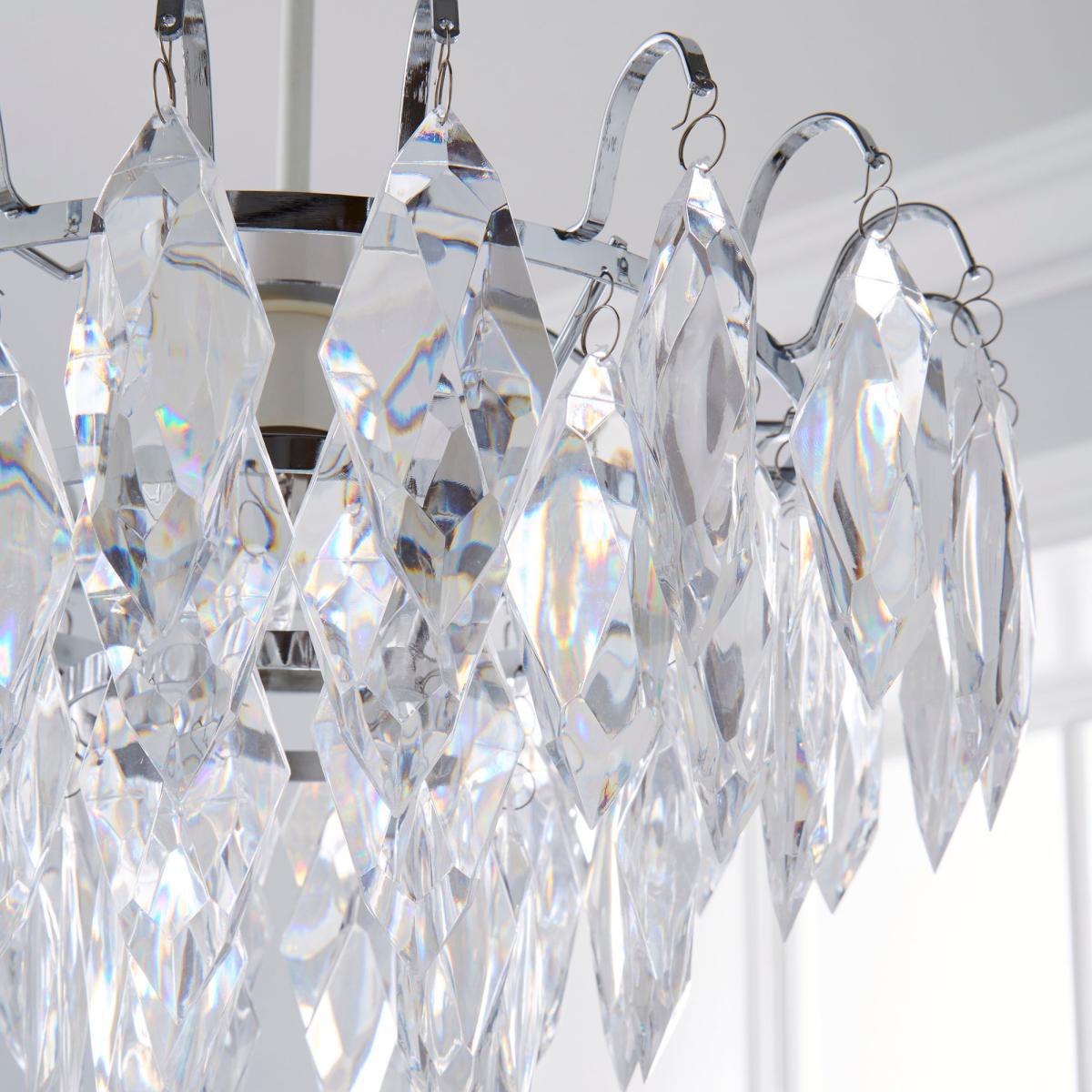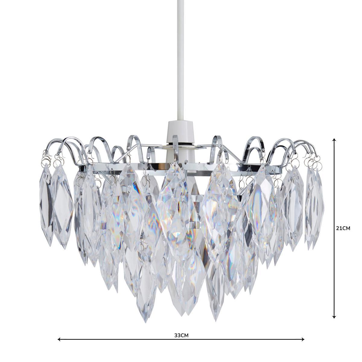 I love the sparkle and modern elegance of this pendant, making it a versatile choice for contemporary or minimalist interiors. Its chrome finish combined with the crystal-like drops offers a chic, reflective quality that works beautifully in both living rooms and dining areas. To style it effectively, consider pairing it with sleek metallic accents or plush textiles in neutral tones to let the pendant be the statement piece. It’s especially impactful hung over a dining table or in a space with high ceilings, where its eye-catching design can truly shine. Practical tip: ensure the height is tailored to maximise the sparkle without overpowering the room’s proportions.