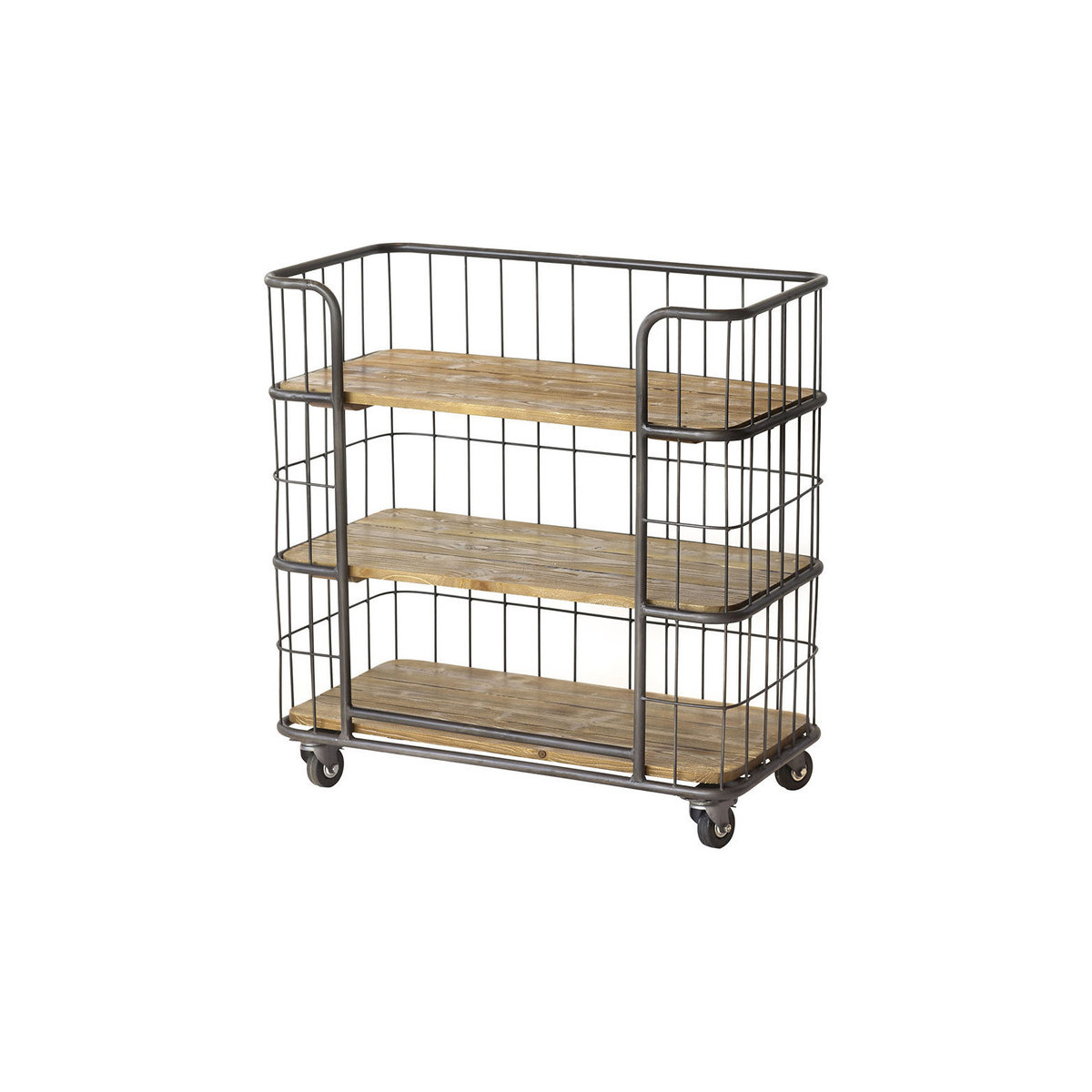 Looking for some portable storage? This three-tier shelf unit from Parlane is for you. With three wooden shelves encased in a metal cage, this unit is also on wheels, so you can move around the home wherever you need it.