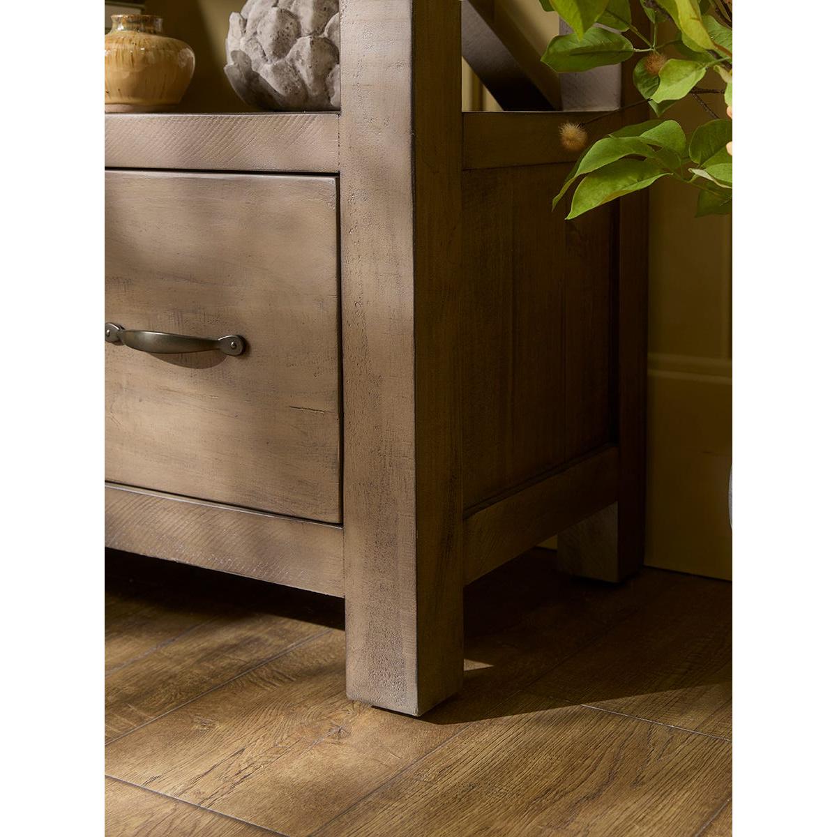 I love this piece for its versatile, rustic charm that complements both traditional and contemporary interiors. The timber finish adds warmth and character, making it a practical yet styled storage solution. It's perfect for displaying books, ceramics or personal treasures in a living room or study, and the pull-out drawers provide handy storage for bits and bobs. For styling tips, consider layering with woven baskets or greenery to soften the look, or add antique accessories for a lived-in, curated feel. It works especially well in spaces with neutral or muted colour palettes, where its natural finish can stand out as a feature.