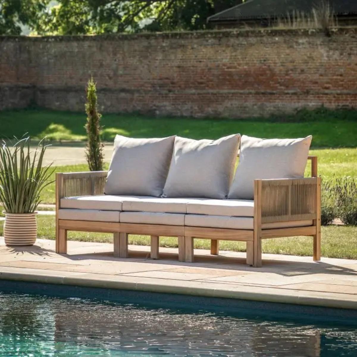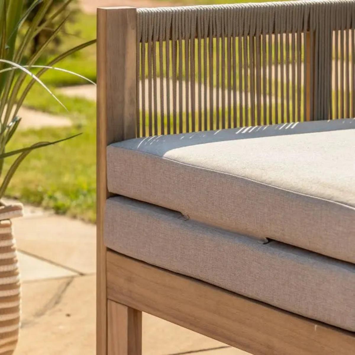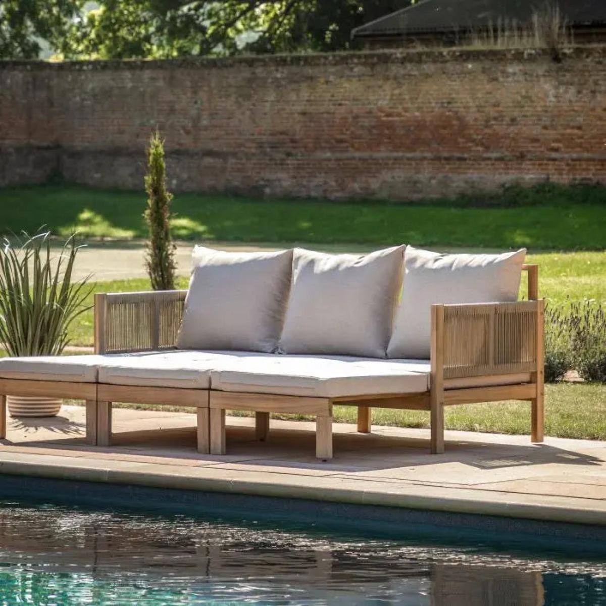 Incredibly versatile this sofa lounger adapts to your comfort and needs, never compromising on style or practicality. Pull out sections at the front of this elegantly simple sofa allow you to transform the sofa into a corner lounger, double ended lounger or full day bed for maximum comfort and relaxation. Made from Acacia wood with rope woven detail at the arms and double stacked cushions which fold out, this sofa lounger is the perfect addition to your summer. Incredibly versatile this sofa lounger adapts to your comfort and needs, never compromising on style or practicality. Pull out sections at the front of this elegantly simple sofa allow you to transform the sofa into a corner lounger, double ended lounger or full day bed for maximum comfort and relaxation. Made from Acacia wood with rope woven detail at the arms and double stacked cushions which fold out, this sofa lounger is the perfect addition to your summer.