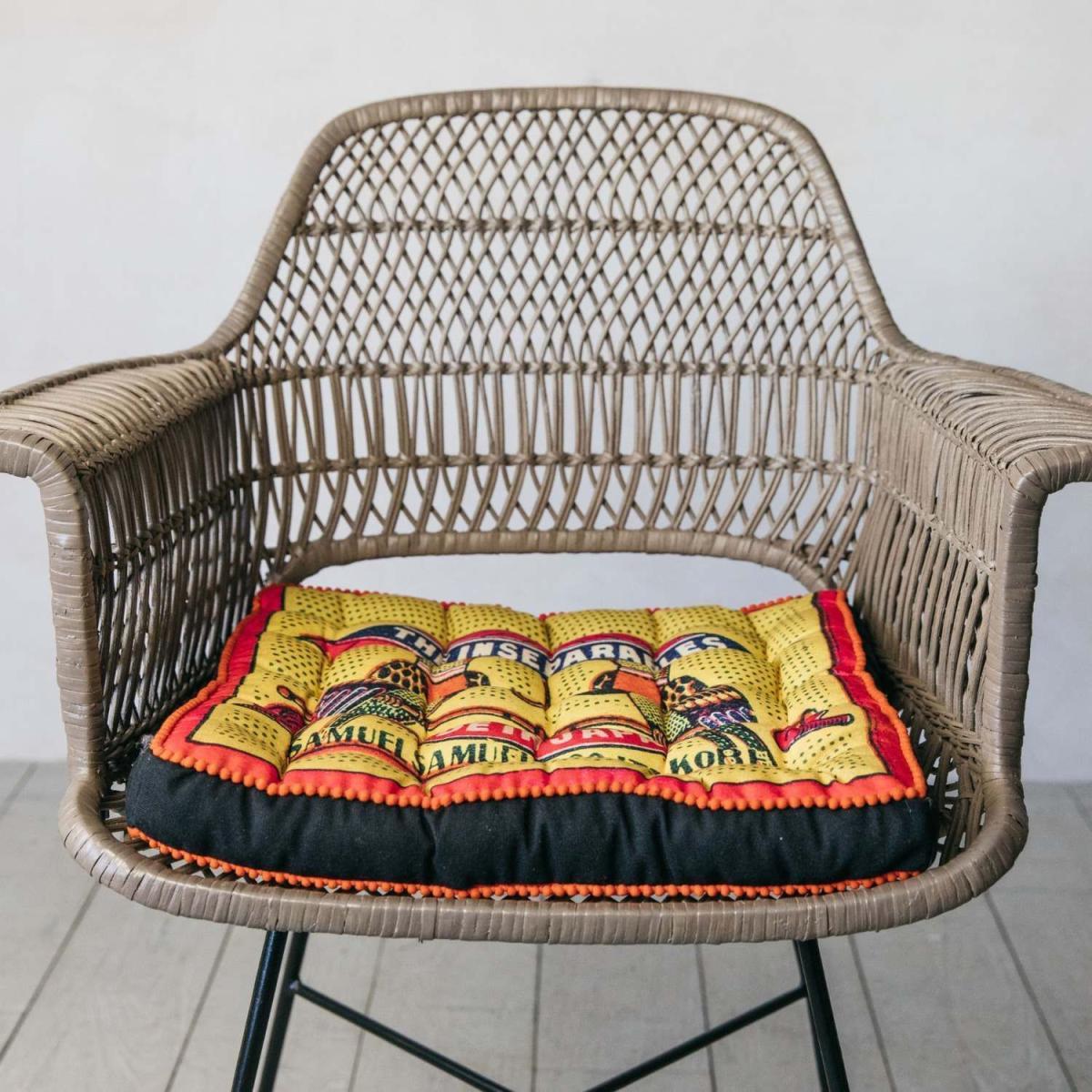 With designs inspired by colourful retro matchboxes, these quirky pinched seat pads will instantly uplift any space. Place on kitchen chairs, armchairs and benches to add a layer of sumptuous comfort with a vibrant retro flair. Exclusive to G&G.