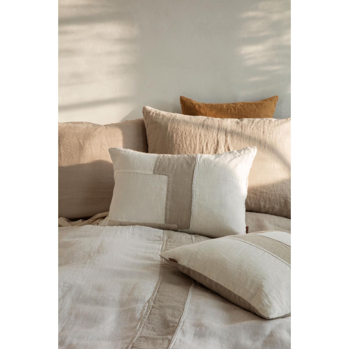 Inspired by the traditional Korean technique of "Pojagi", this lightweight bedspread is made from an ultra-modern patchwork of two materials, with GOTS-certified organic cotton and pure linen. Moving the spotlight onto noble and natural materials, this bedspread has a naturally crinkled aspect, relaxed yet elegant. With its intriguing combination of linen and slightly sheer cotton, the Part bedspread is sure to add an effortlessly cool element to your bedroom. The linen is a 100% natural material, sustainable, ecological and healthy, as well as being easy to care for. The 100% natural linen fibres are anti-allergenic and anti-bacterial: an ideal material for sensitive skins. Heat-regulating, linen offers a cool touch in summer and warmth in winter. Its natural properties ensure relaxation, well-being and promote sleep. You can accessorise your bed with the Part cushion collection, sold separately.