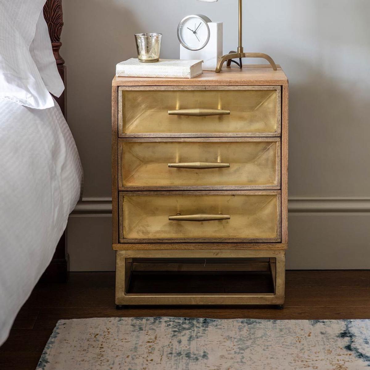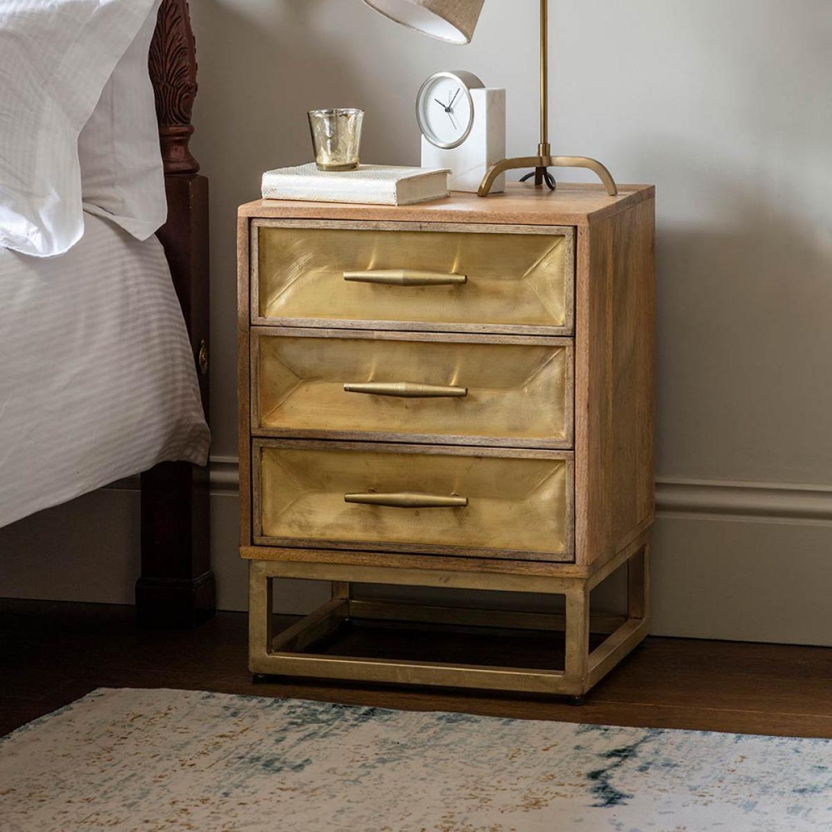 As well as our fabulous Pascali Bar Cabinet and matching Pascali collection, we also offer these Pascali Bedside Drawers for a luxurious Art Deco look in the main bedroom or guest room. With three drawers offering plenty of storage space for bedtime essentials, the brass cladded drawers are complemented by a brass plated frame and natural mango wood finish. Practical and punchy, it’s a must-have for any bedroom upgrade and can easily be moved into different positions when you fancy a change.