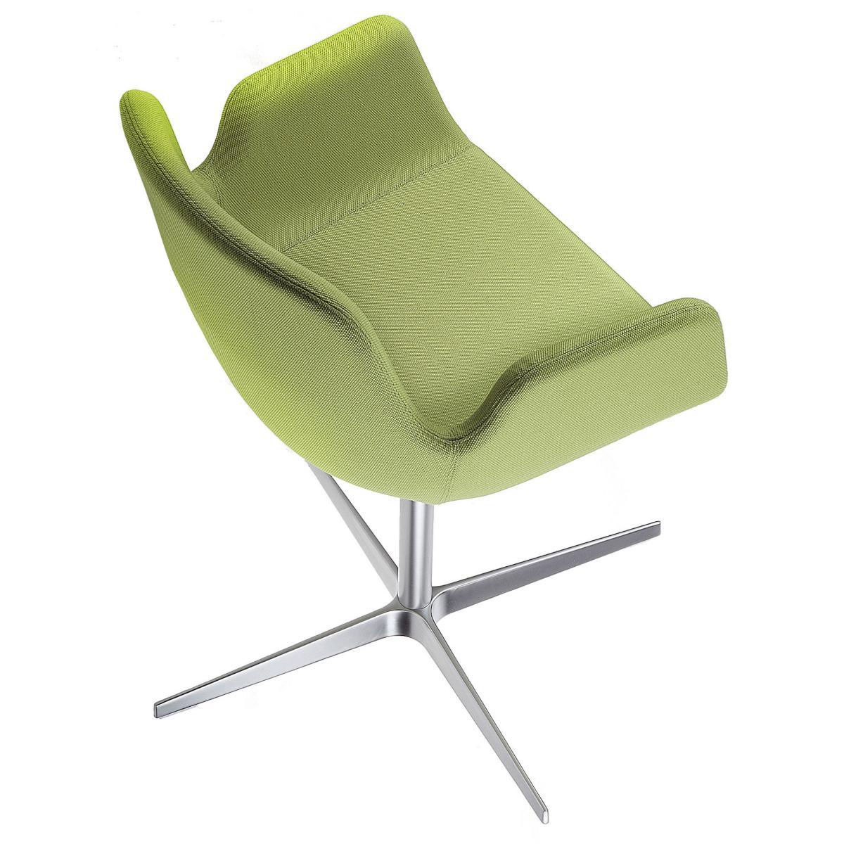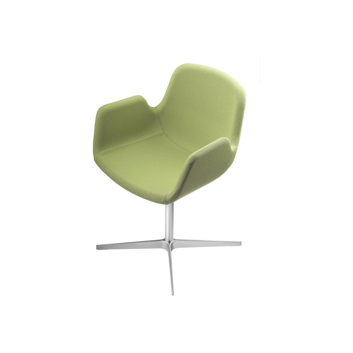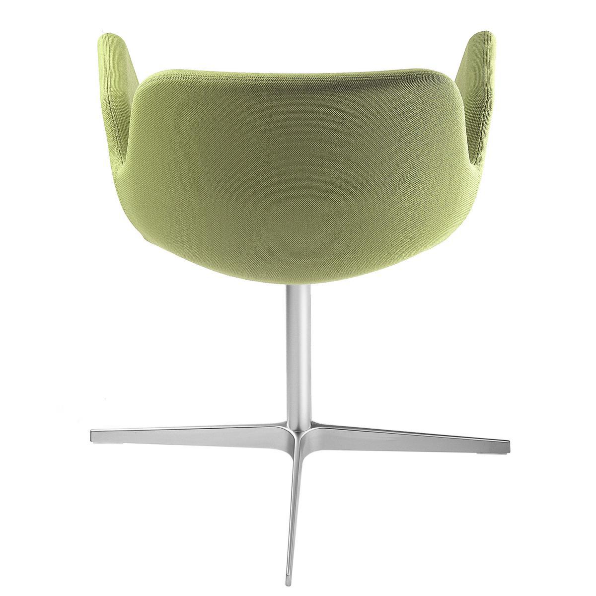 Light and with economic proportions, Pass upholstered chair was created for a refined home but primarily for leisure and corporate environments such as waiting rooms, meeting rooms and restaurants. The fluid design contributes to its visual slenderness by subtle separation of the arms from the back. The balance between aesthetical perception and ergonomics is very elegant, achieved by a careful attention to detail in the manufacturing technique. The shell is formed of fire retardant foam upholstered in fabric, in either a mono colour or a combination of colours. Pass is available with tubular steel frame and 4-star base mat chrome or white lacquered base.
