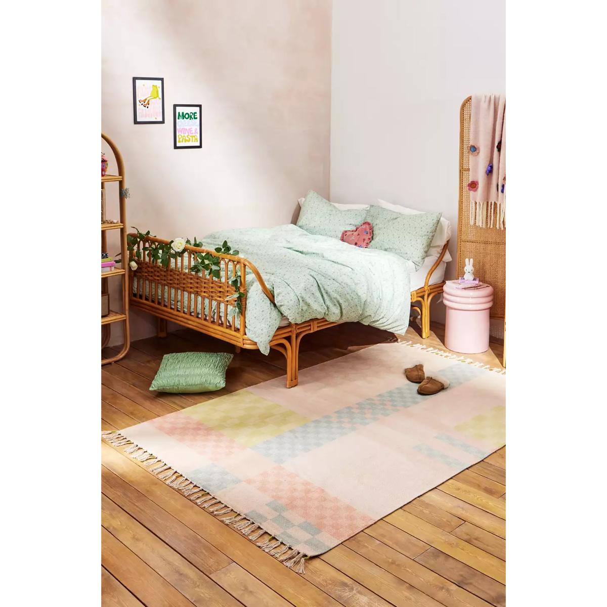Tassel-topped rug in a pastel print with ornate detailing. The folky rug is a handwoven style with checked details and tassel trims at either end. **Content + Care** \- 100% Cotton \- Spot clean **Size** \- 152.4cm x 213.3cm (5ft x 7ft)