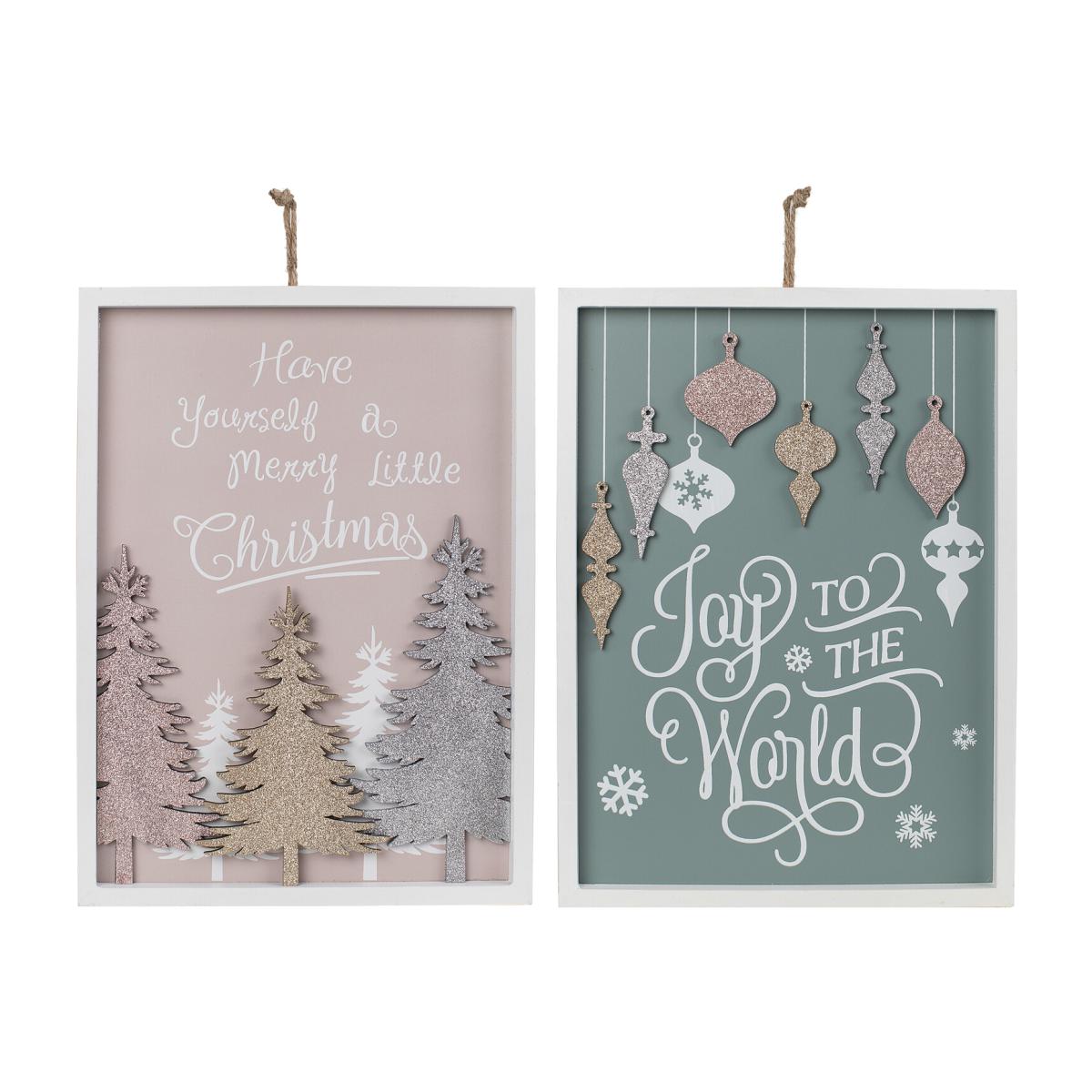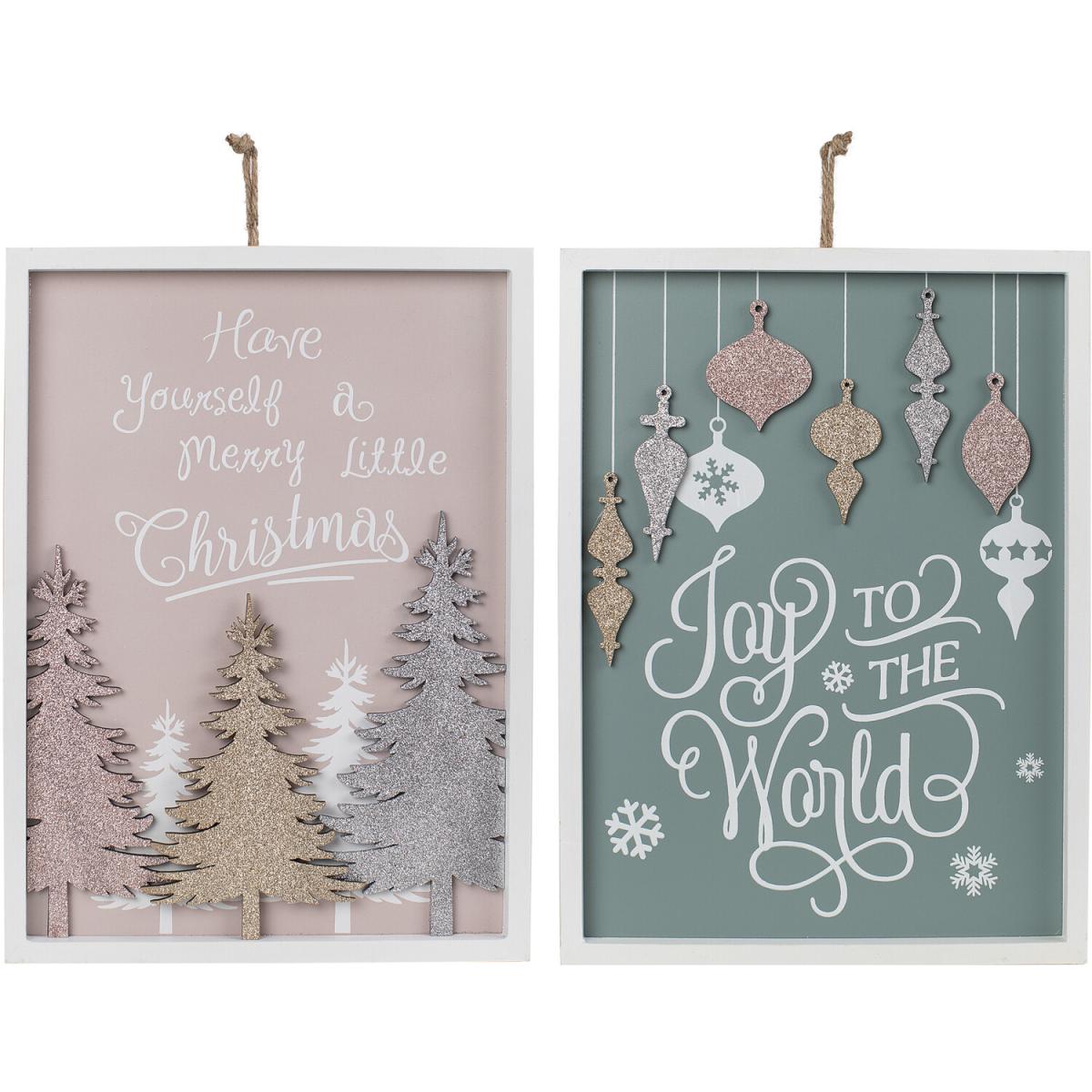 Create the perfect festive mural in your home with one of these gorgeous Pastel Christmas Glitter Framed Plaques. Featuring a Christmas-themed scene of a forest or baubles, the plaque is finished with rich pastel tones and coordinating glitter for a truly magical feel around your space. Printed on the background you'll find a comforting winter slogan that brilliantly matches its frame, giving you a cohesive look around your home regardless of your Xmas theme. Ready to hang in any room, this is a decoration you'll want to use every winter.