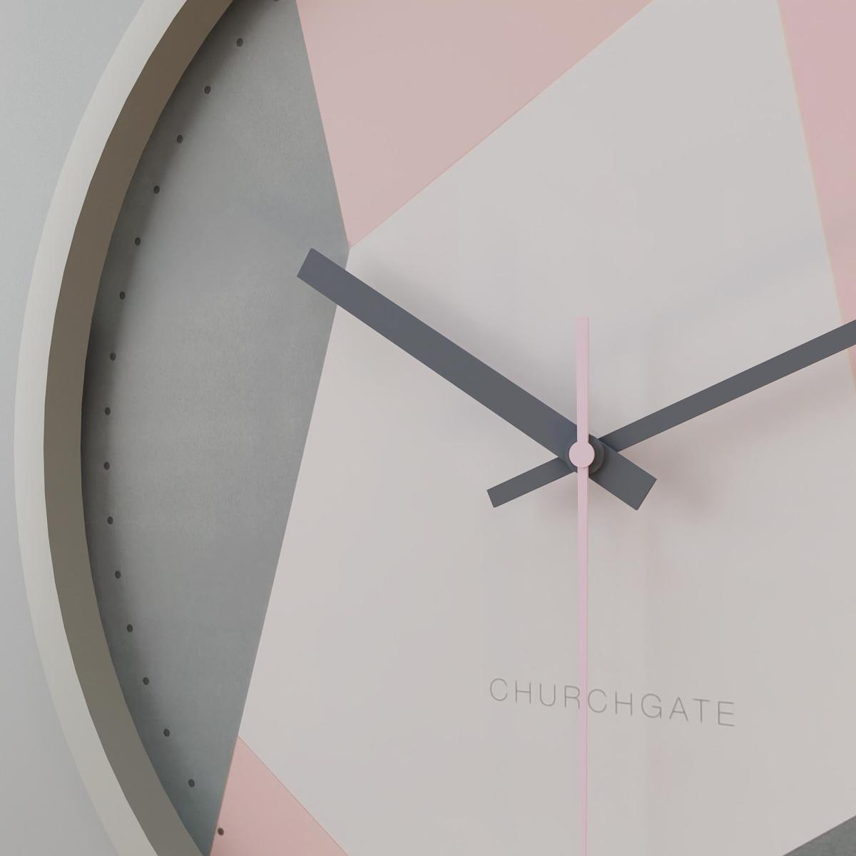 Offering a modern retro style, the pastel pink geo clock would add an elegant touch to any home. The soft design, cream colorued frame and contrasting grey handles would make this clock a welcome addition to any modern home.