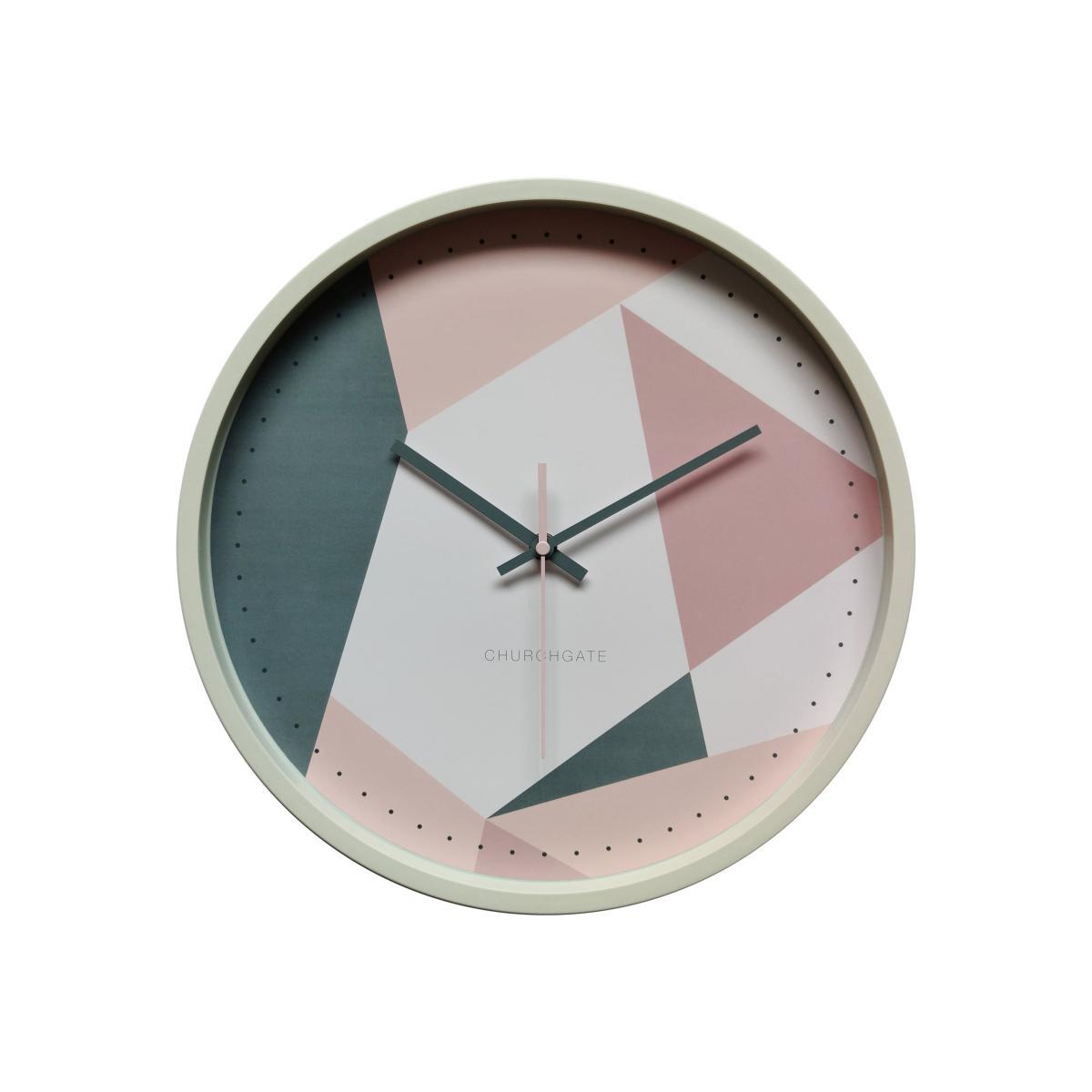 Pastel Geo Pink Clock 36cm Cream, Green and Pink