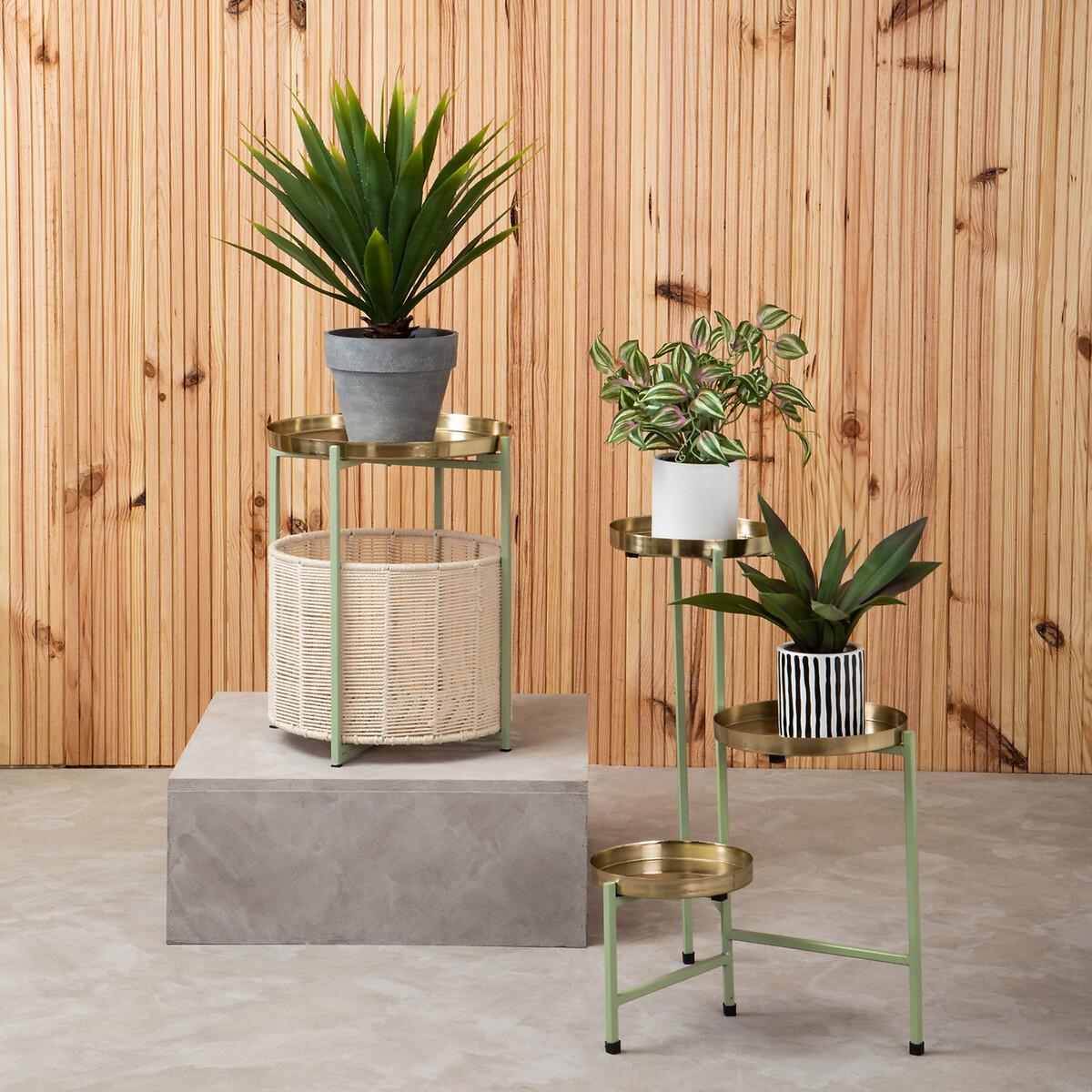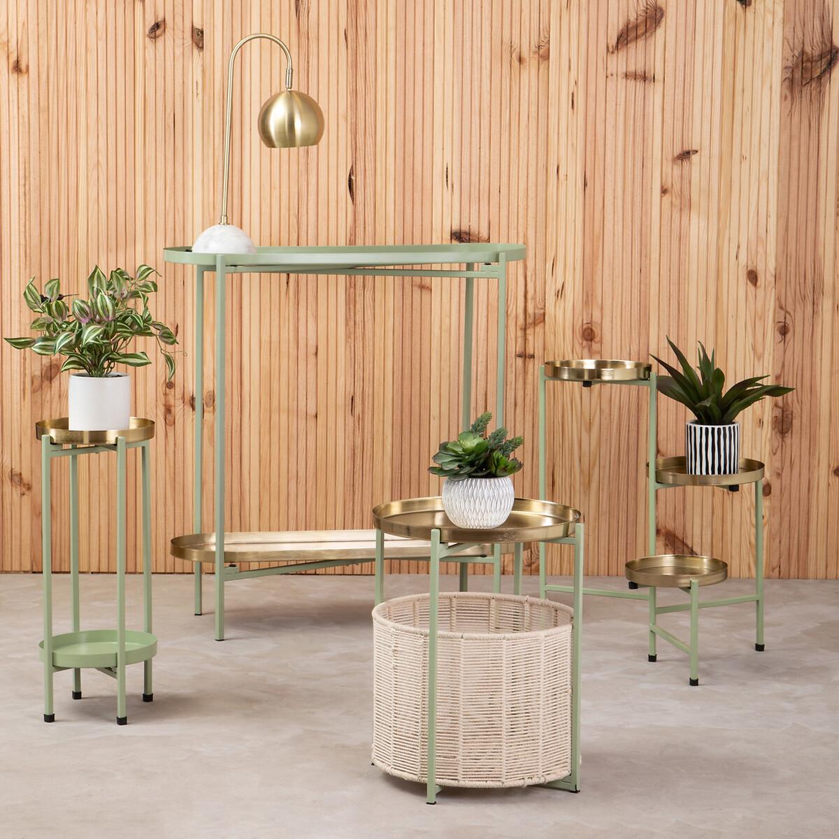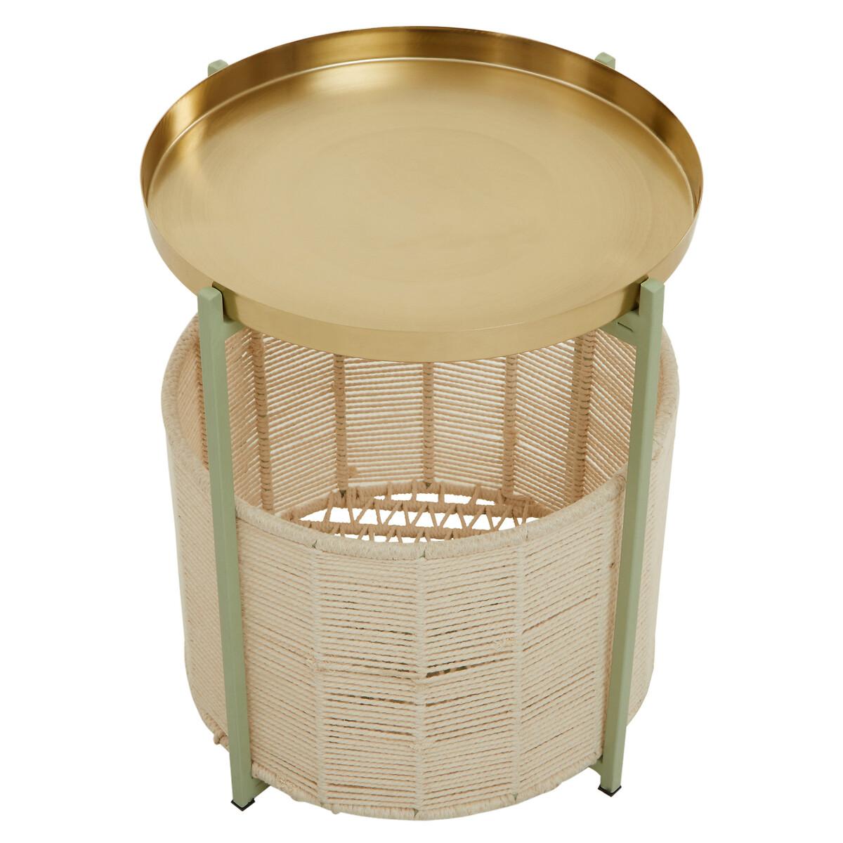 Made from metal in a two-tiered design, with a removable circular tray top and a cotton storage basket base, this is the perfect side table for city living. Ideal for small spaces, it's perfect for keep clutter clear. A luxe matte frame and polished metal tabletop ensures this piece is as stylish as it is functional. Product details Two-tier storage side table. Removable tray top Cotton storage basket base Matte metal frame Assembly required. Care instructions Clean with damp cloth only. Product Composition - Metal, Textile. Product Dimensions - 47 cm x40 cm x40 cm , Weight - 5.34 kg. Package Dimensions - 49 cm x 40 cm x 34 cm, Weight 7 kg. This product will be dispatched by one of our trusted suppliers. You’ll be contacted by their selected courier about your delivery. PREMI01