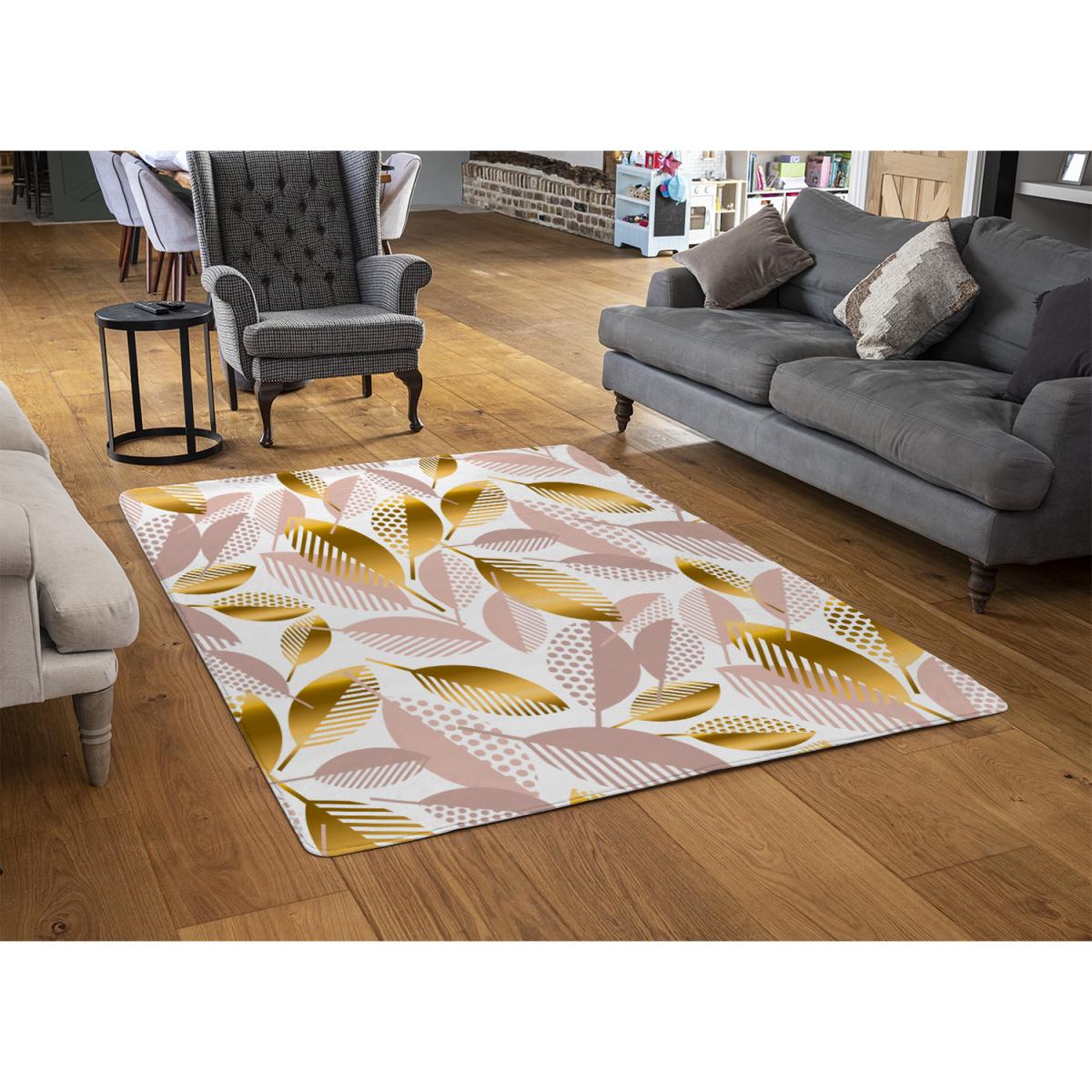 Pastel Rose And Gold Autumn Rug - Gold / 230cm
