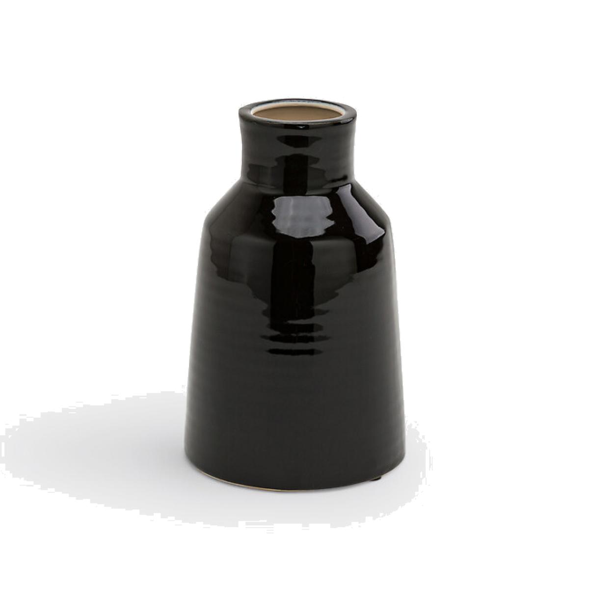 I really like the simple, modern silhouette of this little vase - its clean lines and glossy black finish make it a versatile piece for both contemporary and minimal interiors. It works well as a standalone accent or grouped with other monochrome ceramics for a cohesive look. Given its height, it’s perfect for small floral arrangements or twigs, but it can also be styled empty for visual interest on a shelf or mantel. For a more eclectic vibe, try pairing it with textured textiles or colourful accents to let it stand out. This vase is a practical choice for adding a touch of sophistication without overwhelming your space.