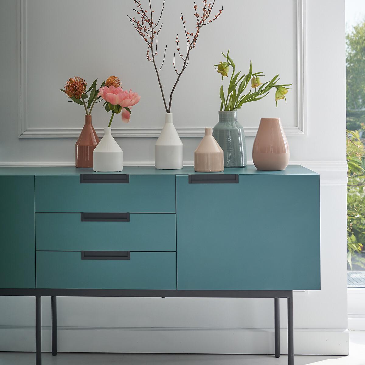 The Pastela 23cm high ceramic vase is a versatile piece that works well in both modern and minimal interiors. I love its clean, classic silhouette and glossy black finish, which makes it easy to style with a variety of colour schemes and textures. It works particularly well when paired with fresh or dried botanicals for an understated centrepiece, or even alone as a sculptural accent on shelves or side tables. For practical styling tips, consider filling it with simple stems or twigs to maintain a streamlined look, or experiment with layering it within a collection of different-sized vases to create visual interest. Its simplicity allows for flexibility across different spaces and interior styles.