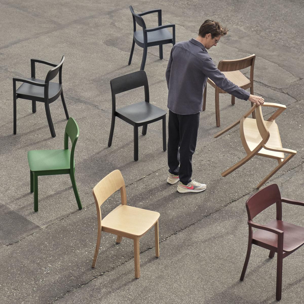 A French designer based in Brussels, Julien Renault has created “Pastis”: a collection of wooden chairs, armchairs and tables inspired by French brasseries. Conceived during the first lockdown, Pastis is an ode to something we missed during that period: the simple, friendly atmosphere of cafes, bars and terraces. Combining robust construction and timeless aesthetics, these pieces focus on authenticity, solidity and quality craftsmanship. Julien Renault explains: “Pastis is clearly a tribute to moments spent with others, to common spaces. I like to imagine a bar, a café, with beautiful woodwork and white tablecloths. It's a rather romantic vision, and I designed this collection with that kind of atmosphere and space in mind - the type of environment where the furniture is weathered, but the design somehow seems eternally contemporary, always in tune with our times and our place.” A quasi-artisan with a joyful asceticism, Julien Renault draws his inspiration from Danish design, the Shakers, modern Swiss design, the modernist period, with its humble, honest materials, where everything seems at the same time simple, natural and full of life. Robust and timeless, the Pastis collection is made to last over time. Both sober and joyful, this furniture fits into any type of decor, while distilling a feeling of warmth, friendliness and vitality to its environment. Julien Renault : “I believe that every designer dreams of seeing their products still in use in 10, 20 or 30 years’ time. And I hope people will buy Pastis with the intention of using and enjoying it for a long time. With its strong, romantic curves, I hope the collection will bring a lot of depth and spirit to any space it furnishes, contributing to an atmosphere of authenticity and warmth.'' The bistro-style round tables have a base with strong, romantic curves that echo the armrests of the armchair. Julien Renault: “For the design of the table, I was looking at an English series where the main character was having tea, and I glimpsed at the back of the room a classic English side table with four curved legs. The line of these legs immediately reminded me of the armrest I was designing for the Pastis Chair! I immediately drew a sketch so as not to forget it." Available in a variety of lacquered wood types and colours, the Pastis collection is very versatile: it adapts to numerous interior spaces, from dining rooms to kitchens in private homes, cafes and other public environments.