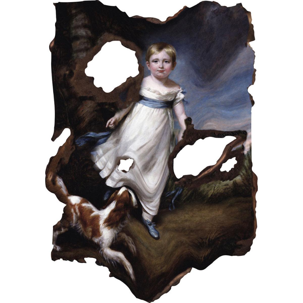 The Renaissance cowhide is unlike any cowhide you have ever seen, it's from a very exotic breed of beast that lives in the fantasy world of designers Young & Battaglia! In collaboration with American artist Chad Wys for the Classics Revisited Collection. The poetic image of a young boy and his dog is stretched and melted, as if on a piece of parchment from a bygone age. This wistful and romantic piece would not look out of place in either a vintage or contemporary interior, is digitally printed in England on a special fabric backed rubber which is the hand cut in to its final hide shape and is washable.