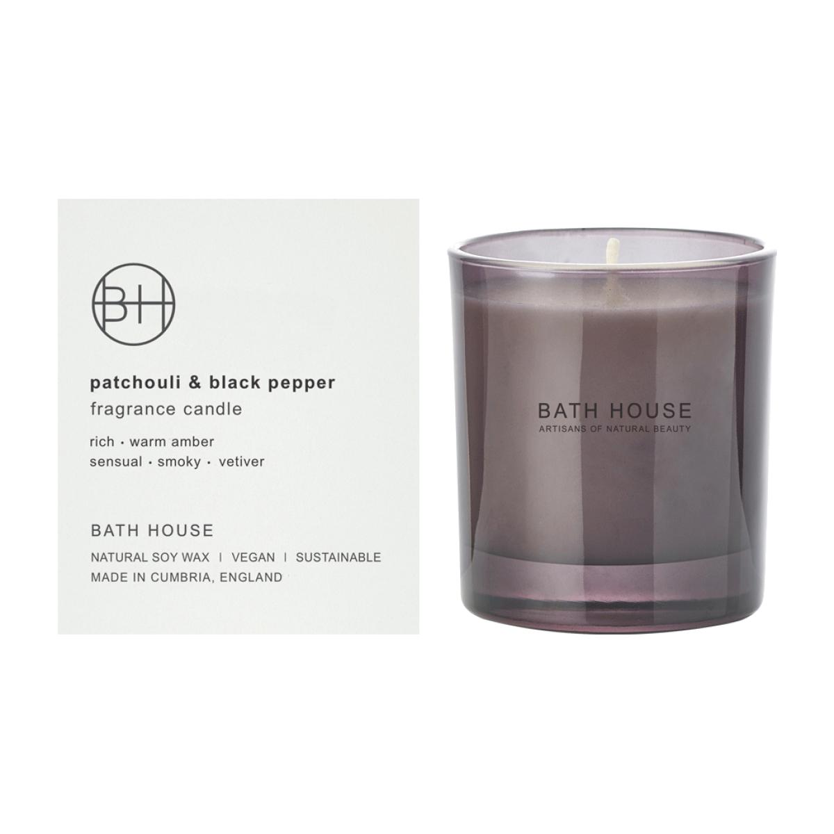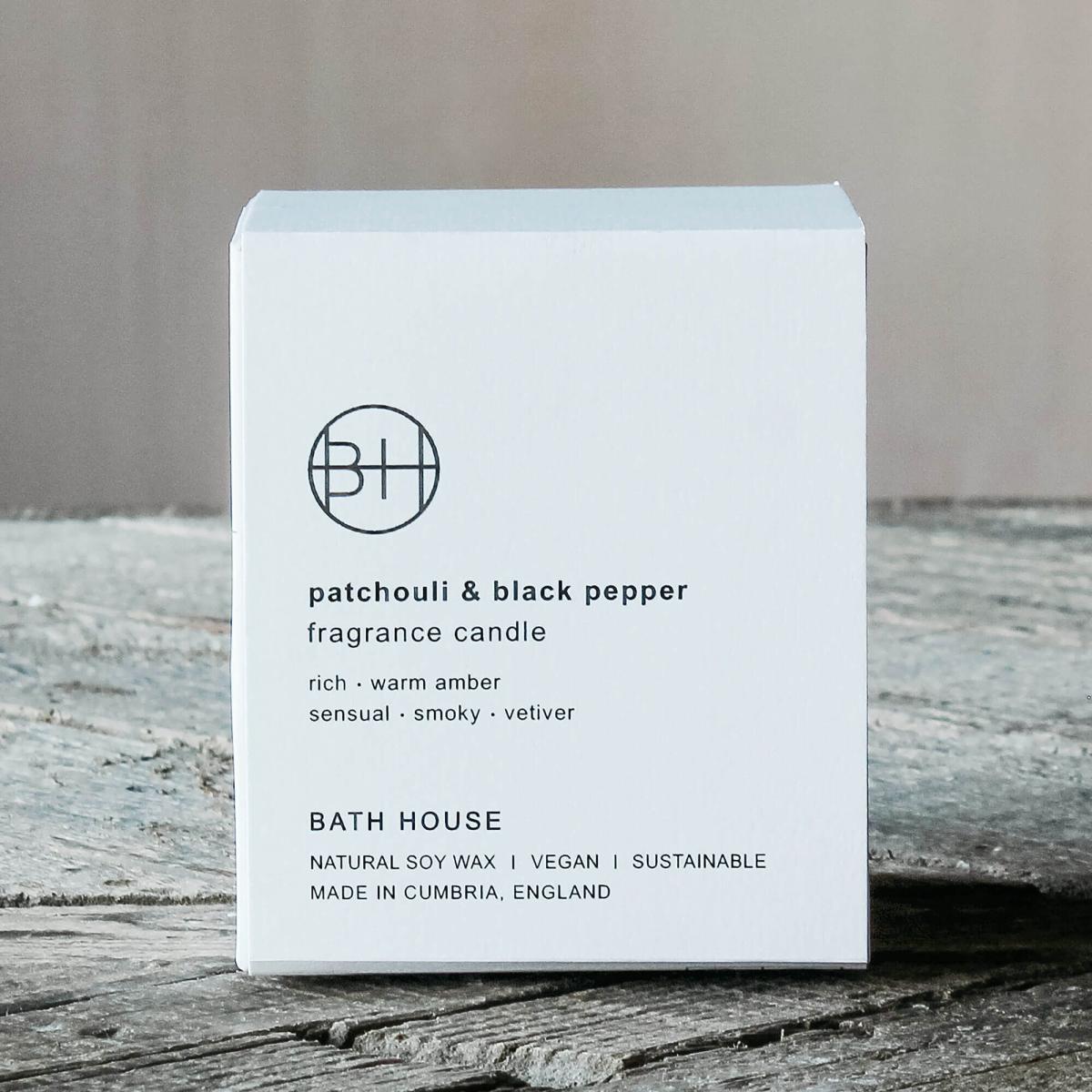 Light this candle that's infused with the warm spiced scents of patchouli, black pepper, vetiver, vanilla, and amber for a luxurious bath with a spa-like feel. Boxed: H9. 5 x W8. 3 x D8cm. Weight: 200g. Top notes: Patchouli and Black Pepper | Heart notes: Vanilla | Base notes: Amber and Vetiver. Made of soy wax in a glass votive. Vegan.