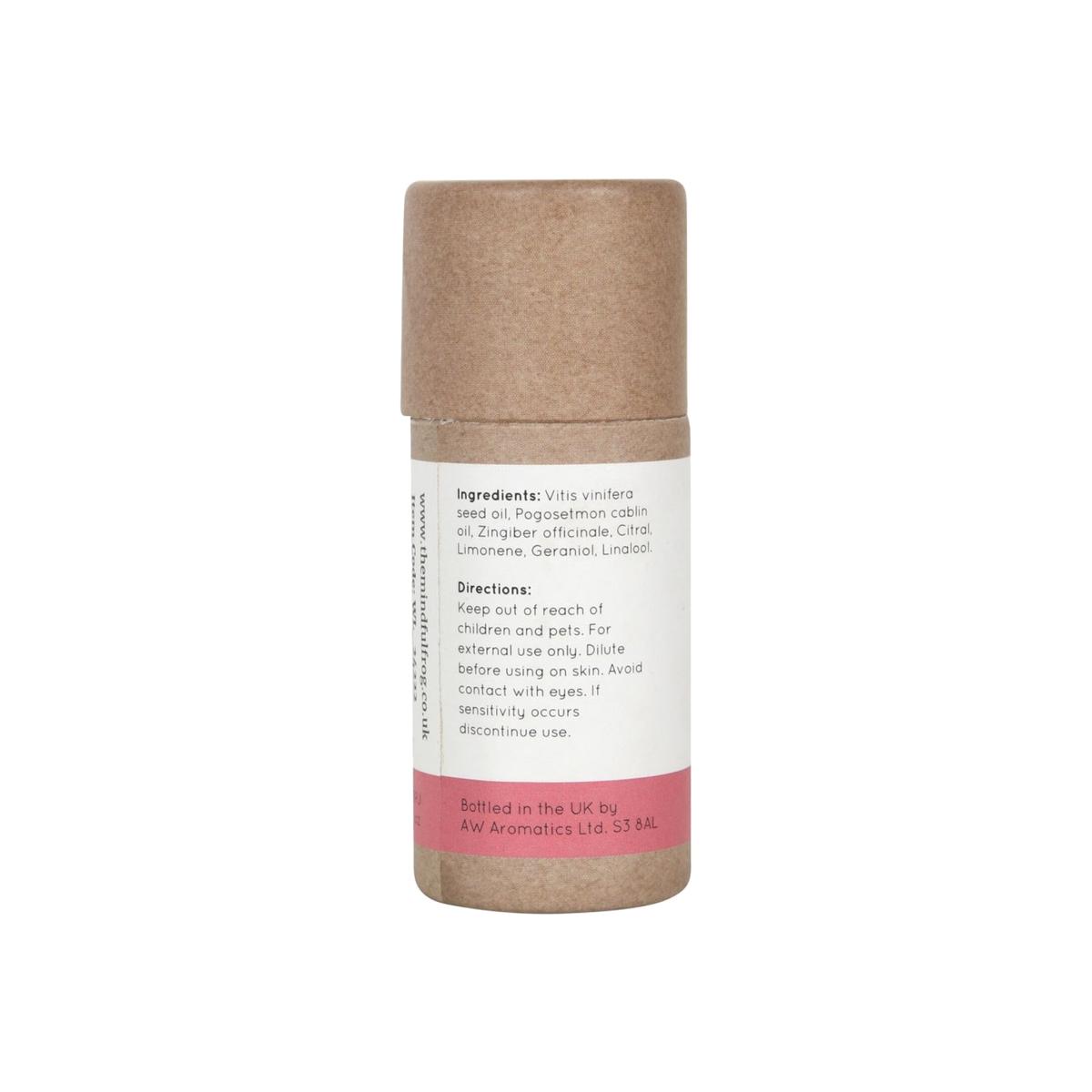 This blended essential oil pairs the spicy scents of patchouli and ginger to spark strength and improve stability. Dilute with water and use with your favourite oil burner, add to a rollerball bottle and dab onto inner wrists as a personal fragrance, mix with water to create your own room spray, add drops to a warm bath for a relaxing home spa experience and more. Essential oils blended with 95% Vitis vinifera grape seed base oil. Packaged in a recyclable cardboard tube. Vegan and bottled in the UK