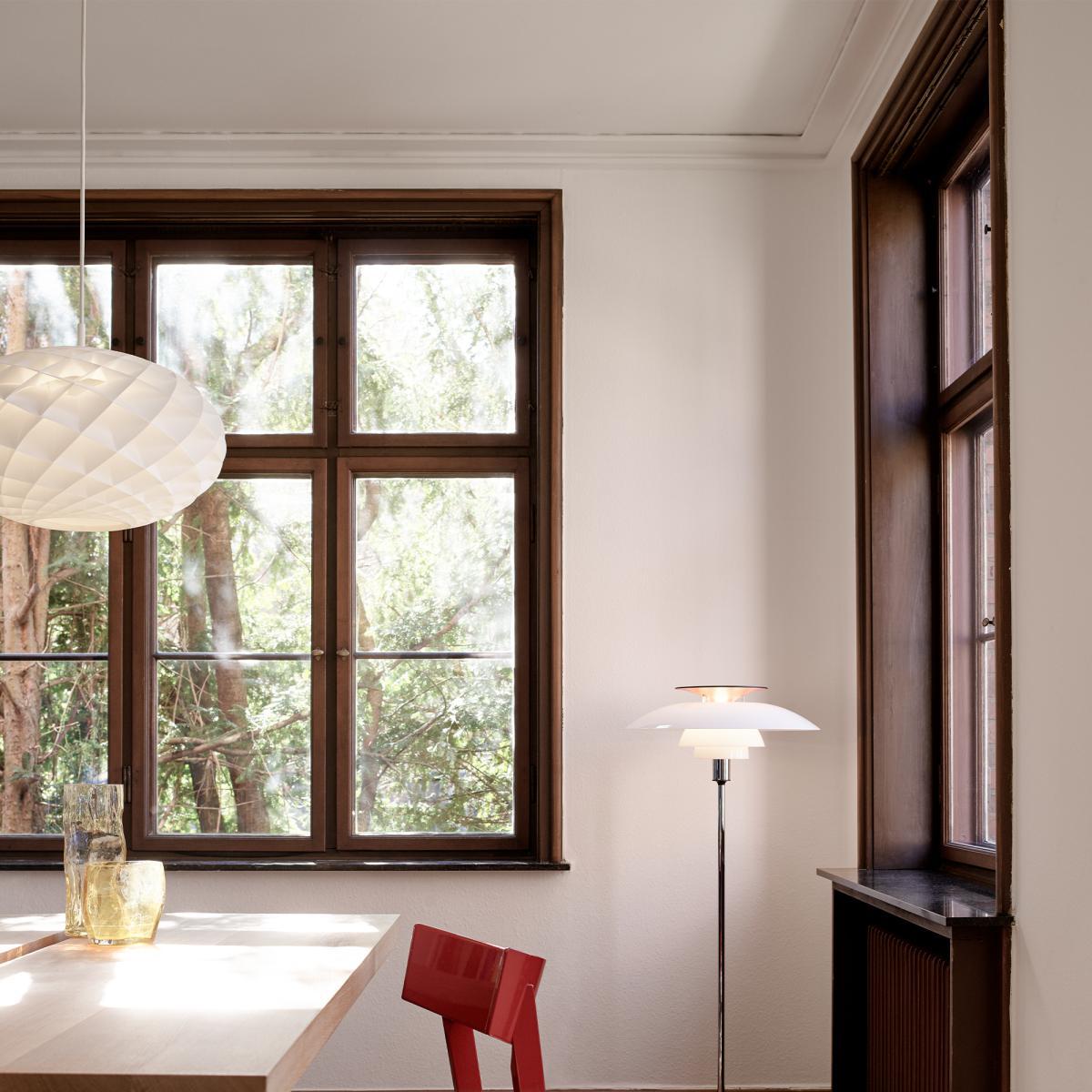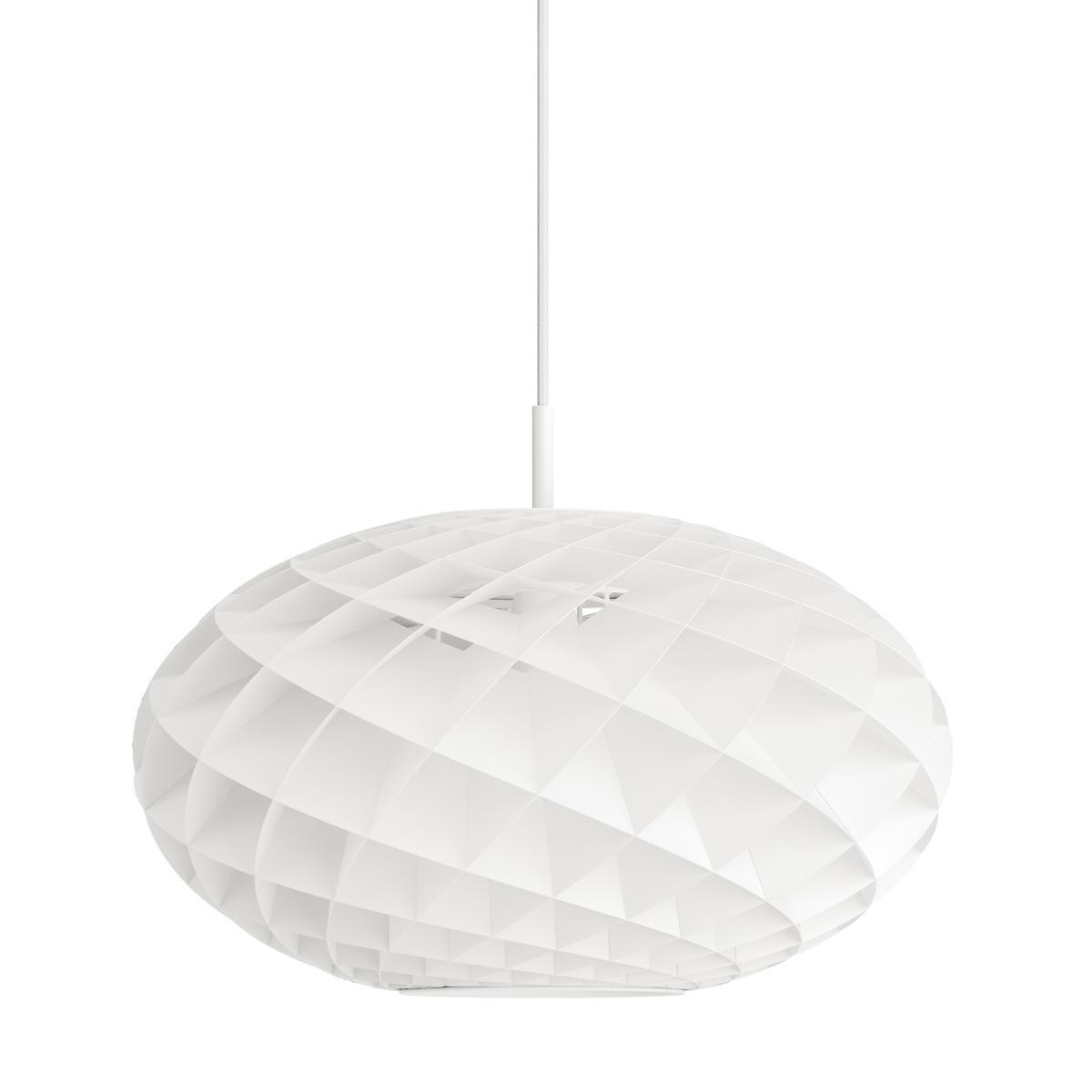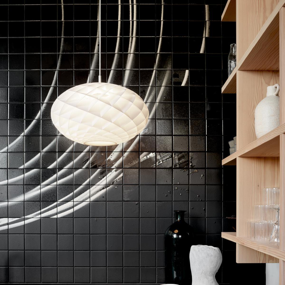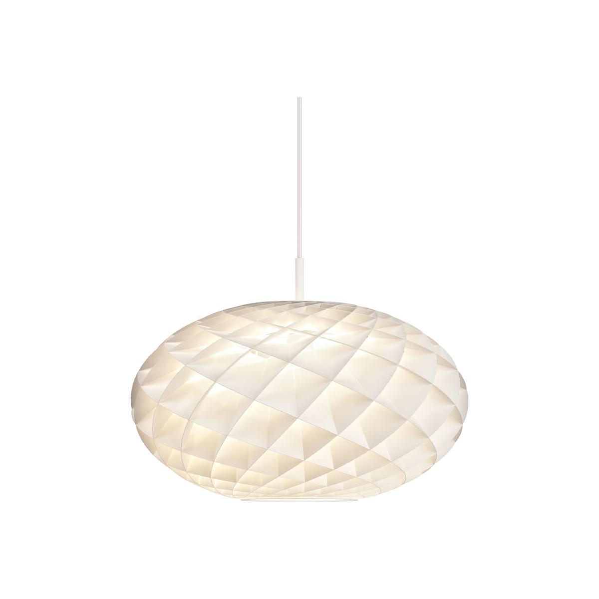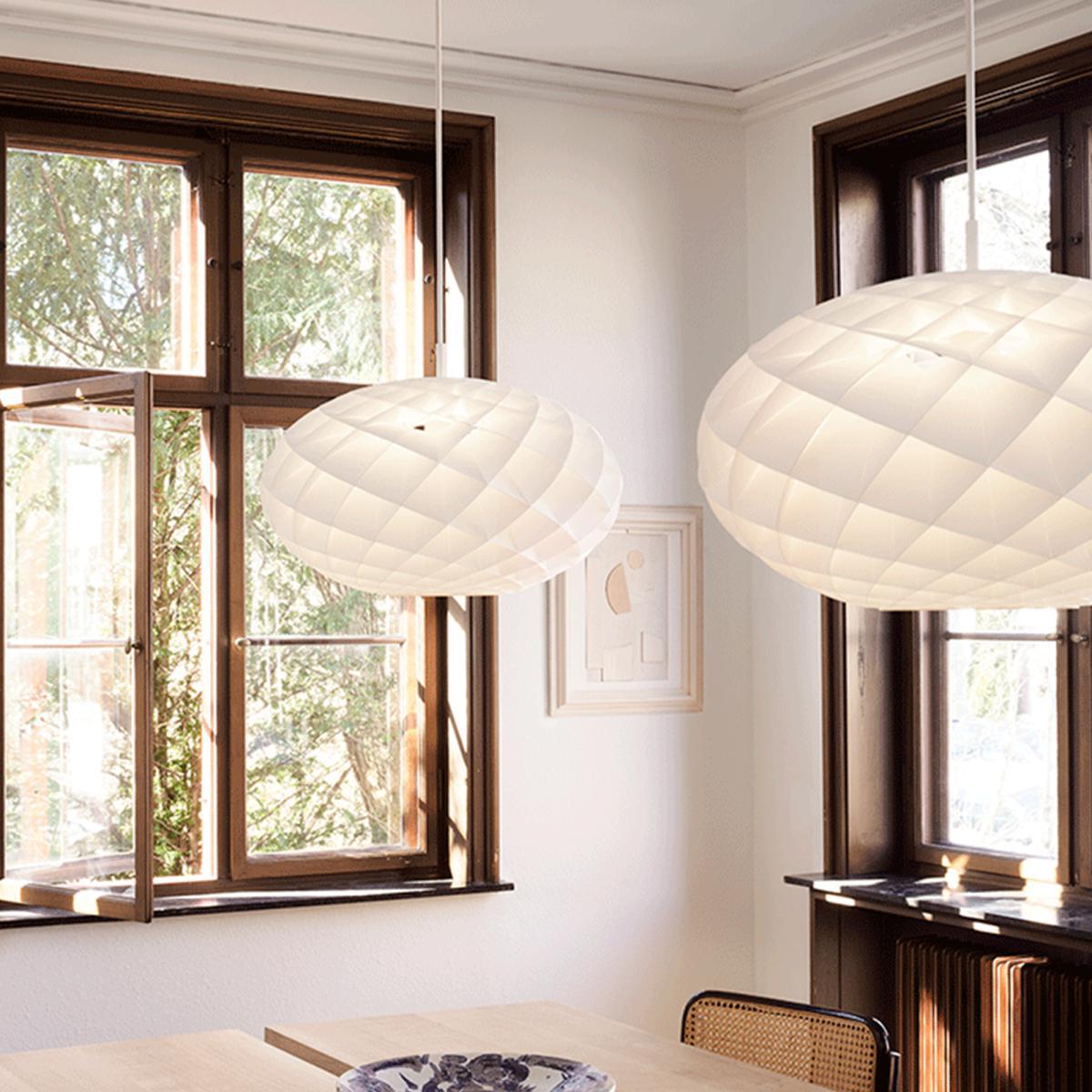 Designed by Øivind Slaatto for Louis Poulsen, the mesmerising, oval-shaped Patera Pendant Light was inspired by the Fibonacci sequence, a pattern that appears in nature as a spiral. Presented as a glowing sphere formed of diamond-shaped cells arranged in a pattern reminiscent of sunflowers and pinecones, the pendant casts a subtle, diffused light through the glowing shapes. Crafted from matt white plastic, the pendant also features chromed-brass accents for a considered finish. Renowned for his simple and poetic solutions to design, Øivind Slaatto's creations are each infused with a unique sense of harmony that stems from his love of music. Driven by the belief that 'practice makes perfect,' Slaatto meticulously perfects each of his designs to achieve optimal beauty and usability.