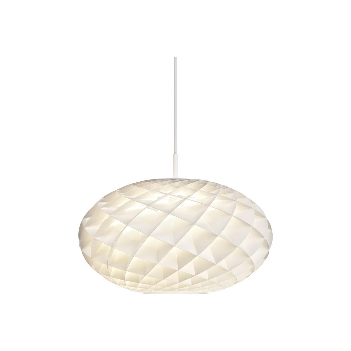 Handcrafted using white PVC slats, the Patera Oval pendant was created by designer Øivind Slaatto, who was inspired by the Fibonacci spiral, a complex mathematical structure. Present in nature, as on sunflowers, seashells or snail shells, the Fibonacci sequence is here reinterpreted to give new life to an incredible luminous ellipse, made up of small diamond-shaped alveoli which distribute the light through 360°. The flattened circular shape resembles an oval when viewed from the side, taking inspiration from the ellipsoidal shapes that can be seen in nature. Patera's 360-degree glare-free lighting is the result of a complex design, with individually positioned cells that bathe surrounding spaces, people and objects in a natural, homogeneous, flattering light. Its shape is beautiful to look at from any angle: the structure based on the Fibonacci sequence gives a different impression depending on the viewing point. The cells have been carefully designed to catch the light and obscure the light source from all viewing angles above 40 degrees. Below 40 degrees, the lamp provides direct downward lighting. The round opening under the lampshade is intended to optimise direct downlighting, with a smooth transition to reflected light. With its minimalist flattened shape, Patera Oval is suitable for spaces where the ceiling height is limited, or spaces where you need to free up height space. The pendant is also very suitable as a high pendant above a table to create a feeling of space between table and ceiling. Patera diffuses a soft, comfortable light which means it can be used everywhere, from the dining room to the meeting room, including the hall, entrance or bedroom. Patera lights up the people gathered around it in a natural way, without forming annoying shadows on faces. Both simple and refined, the style of the lamp adapts to most interior decorations, modern as well as classic. The Patera pendant won the “Lamp of the Year” award at the “Design Awards 2016” in Denmark. Designer Øivind Slaatto: “My ultimate goal was to create a three-dimensional Sudoku. The design required many mathematical calculations. This is also the most complex lamp I have ever created. I find that it gives off a certain poetry and my goal was to create a modern crystal chandelier. I hope this lamp will inspire those who live with it. I hope it will be a source of life. ’’.