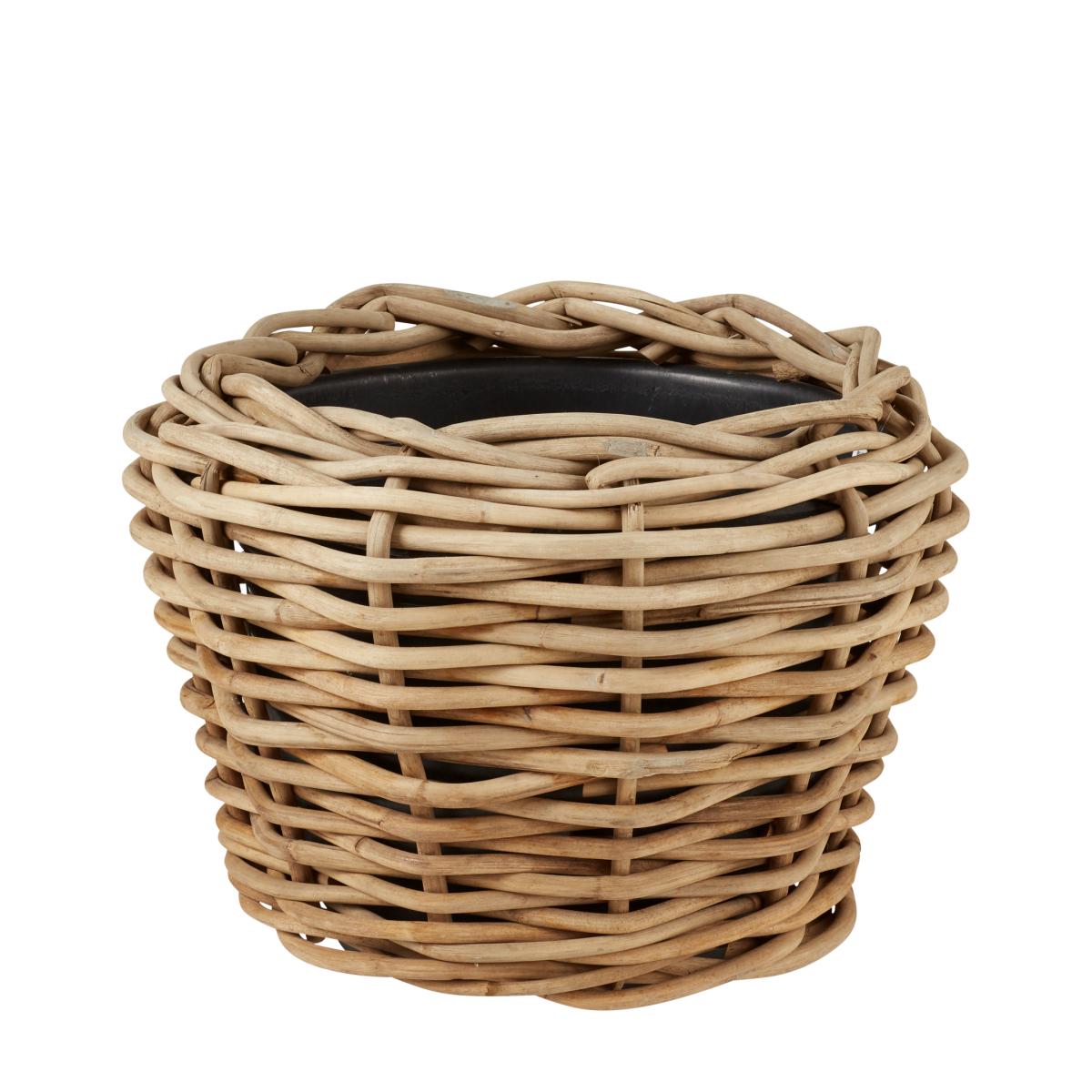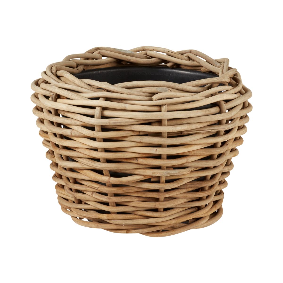 Referencing the French word for spin in its name, our handwoven Patiner pieces look as intricate and delicate as spun sugar, but have the added benefit of being showerproof. This small pot is perfect for displaying plants (real or faux). Patiner Lined Rattan Pot Small - Natural