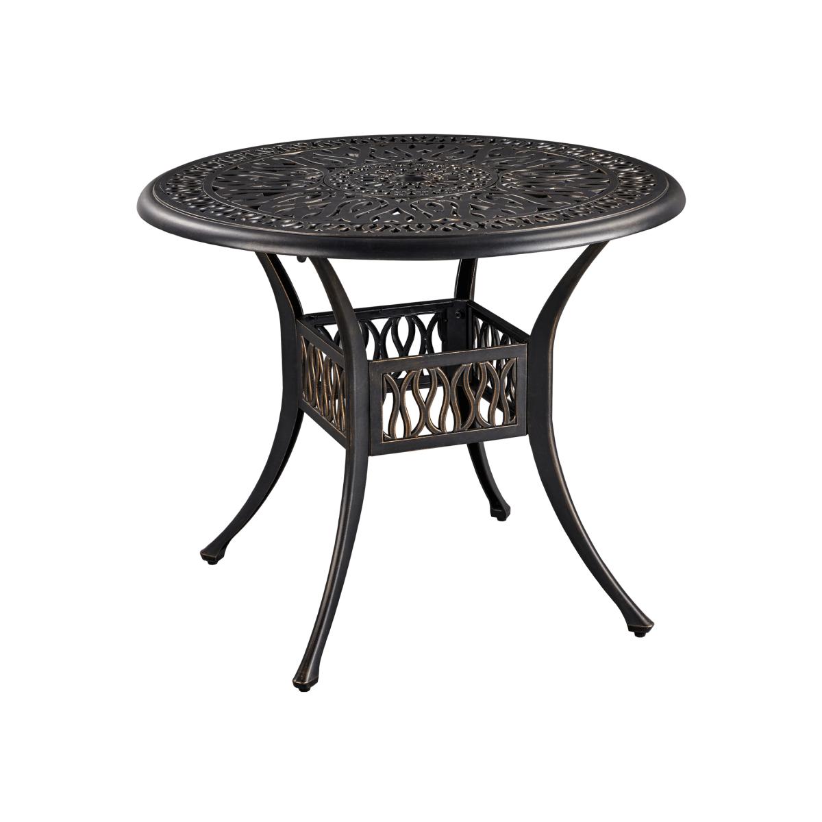 Our elegant patio bistro table is suitable for most outdoor setting or events. Classic Vintage design with floral-petal-shaped back add more antique charm to your designated place. Sturdy aluminium ensures this patio bistro table is sturdy and durable. Rust-resistant and water-proofcoating does not fade easily. Umbrella hole serve more versatility for any outdoor space. Adjustable foot pads help adjust and control the balance of the bistro table according to different patio situation. Our outdoor dining table can be placed in most outdoor events such as an outdoor wedding ceremony, patio setting for cafe and so on.
