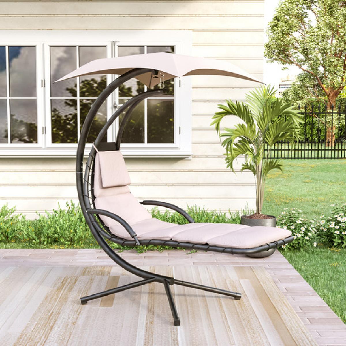 I love this hanging lounger for its modern, relaxed vibe - perfect for creating an outdoor oasis. Its neutral cream white makes it versatile, working well in contemporary gardens or even in rustic settings if paired with natural textures. The curved design and canopy provide comfort and shade, making it ideal for lazy afternoons. For styling, consider adding a few colourful outdoor cushions or a lightweight throw for extra comfort and visual interest. Pair it with wooden or rattan side tables and lush greenery to enhance the inviting feel. Its sleek silhouette means it can blend seamlessly into various garden styles, from minimalist to eclectic, while offering a chic focal point for lounging.